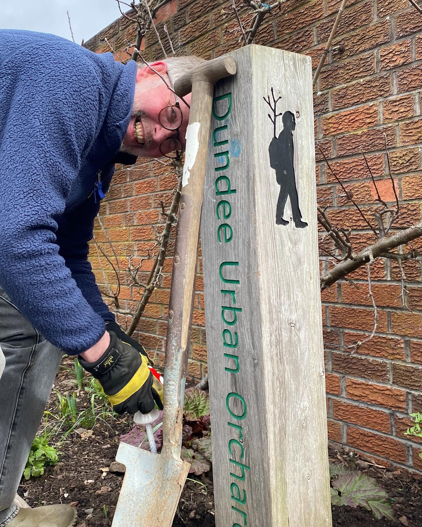 A robin can be spotted on top of Rod’s garden fork (as he always digs the holes to plant our toadstools). The robin is a nod to the BirdNet Pi project results from MAXwell Centre (by Dr David Martin) as they came out top for feathered visitors, with 4288 recorded visits over January 2025 alone!