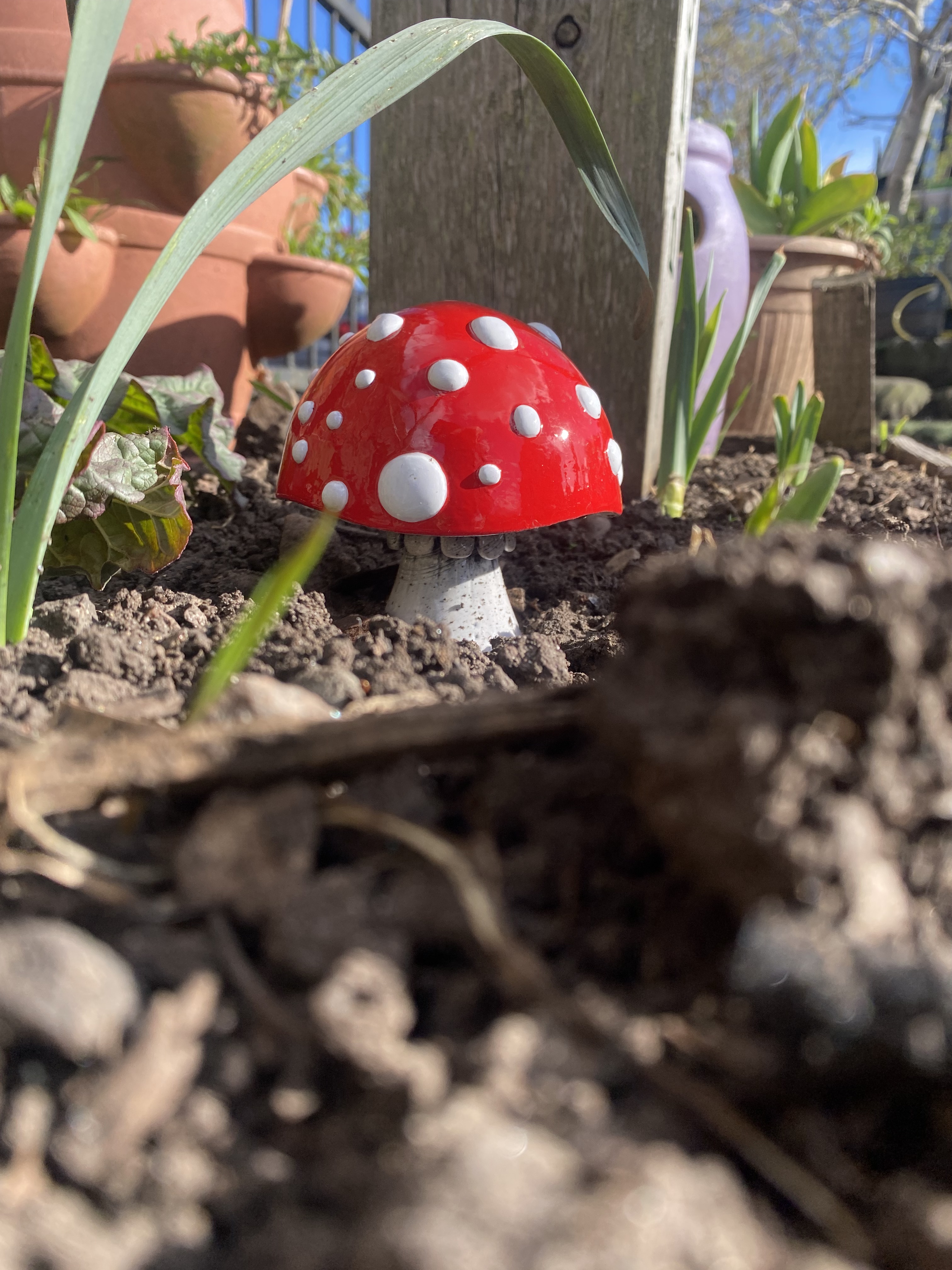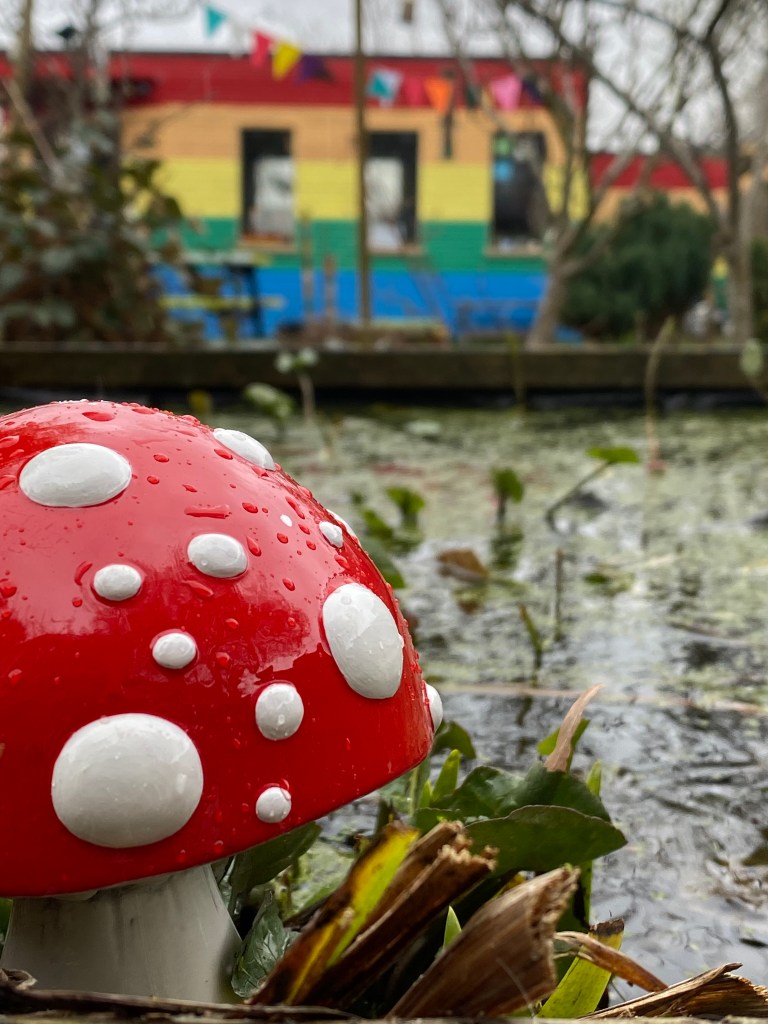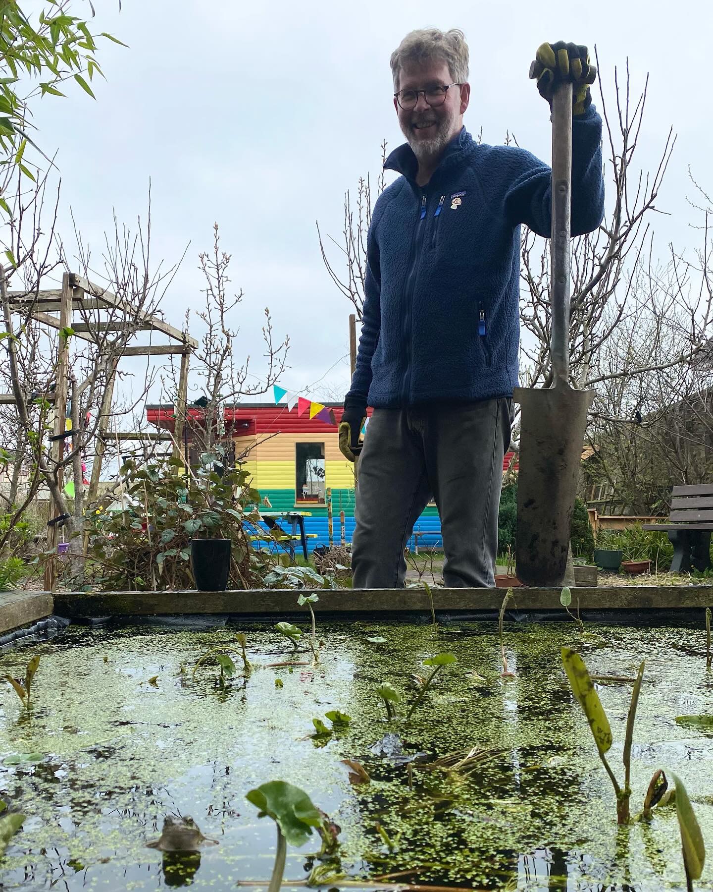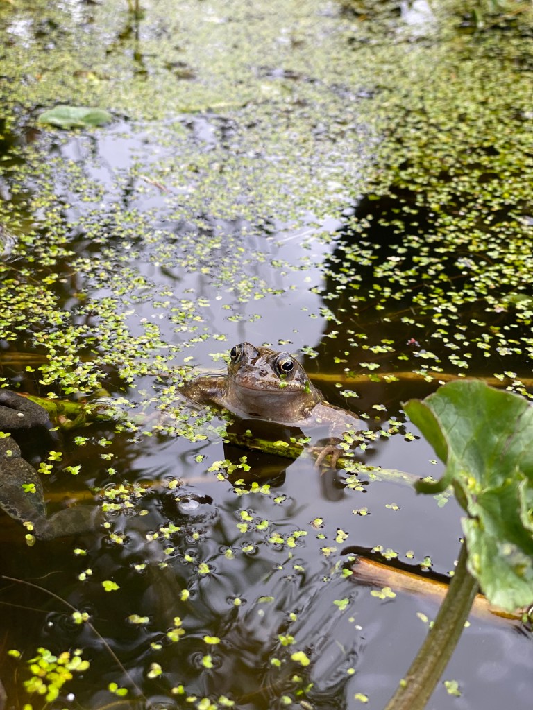 The frogs were very helpful – can you see the little one stealing the show from the pond in Rod’s pic above and the other sneaking a peek at her new 🍄 neighbour? (