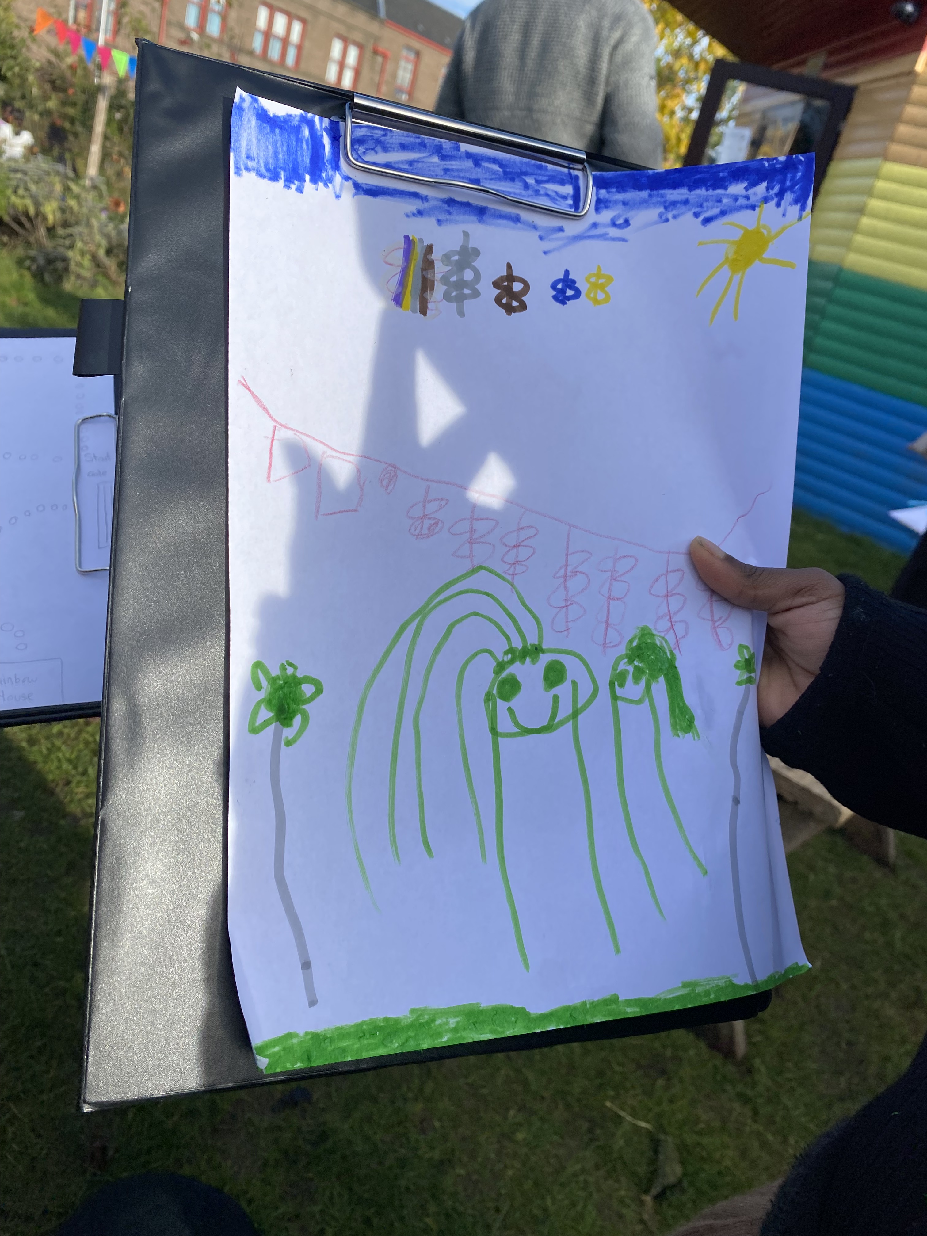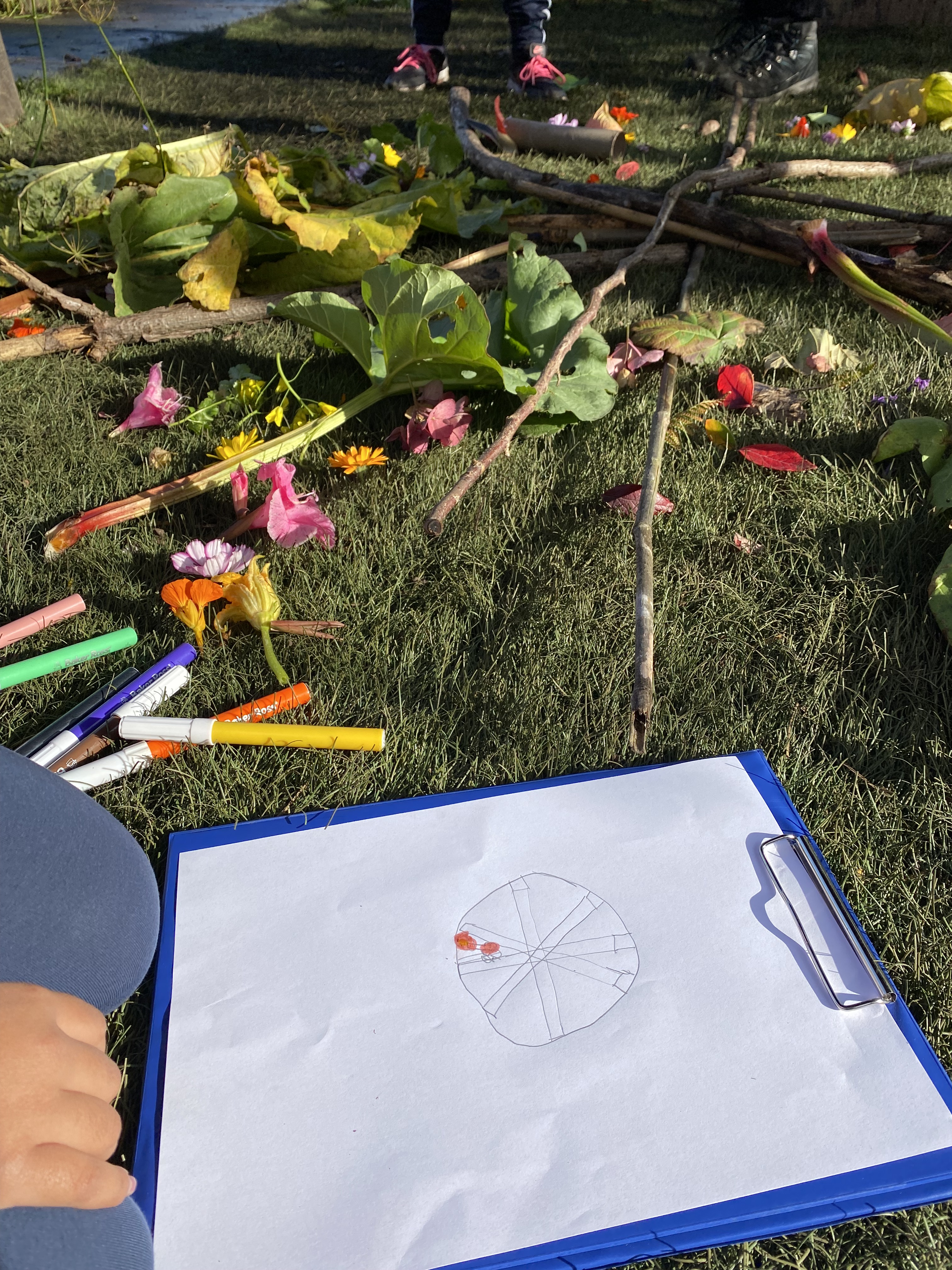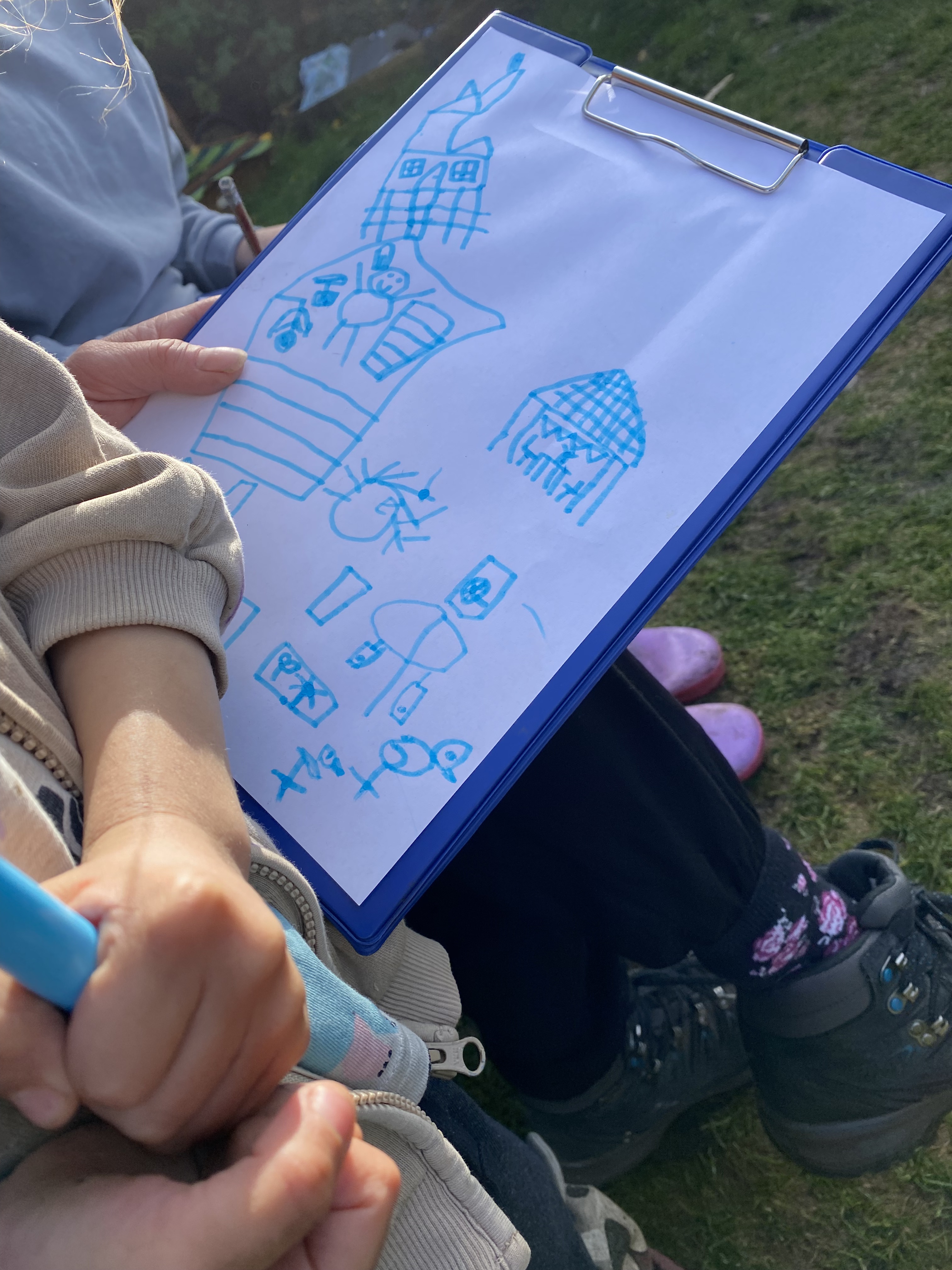 So we all got stuck in and got to work… and oh wow did they get stuck in. The ideas were flowing, the drawings incredible and the laughter infectious. We played and drew, made stick things, mud things, things from leaves and flowers, got inspired by big things and teeny tiny wee things. Spotted ladybirds and slugs, listened to the birds, danced and ran and had a wonderful time. Maps were created, toadstools were sited, stories were told and everyone celebrated the garden, its creatures and those who love it so very much.