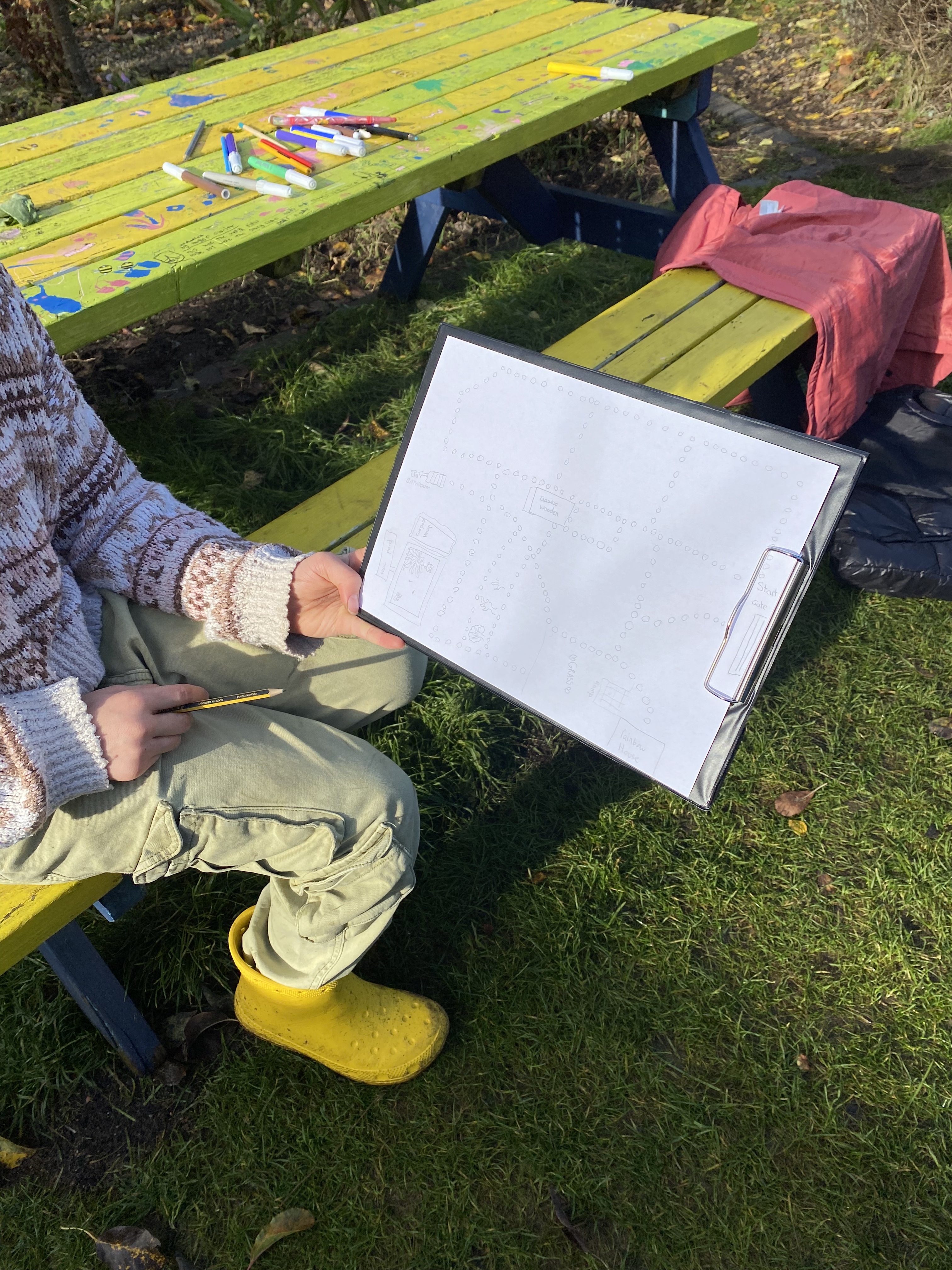 Once more the garden club sprung into action! We needed to further connect our toadstools and our map with nature! With the garden and all its treasures. The garden club are pros at this already but there are many other visitors to the garden too, children from local schools and nurseries, teachers, people from the local community and beyond – so we wanted something that would connect them to nature as much as we are and in a way that they could do so even if we weren’t with them.