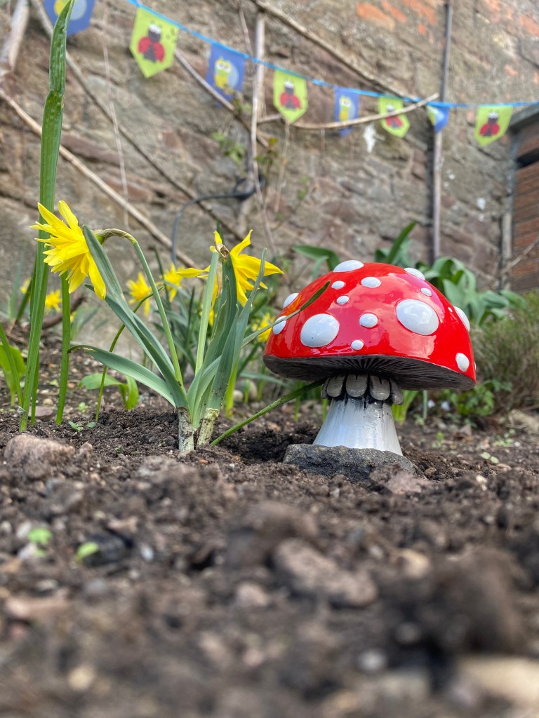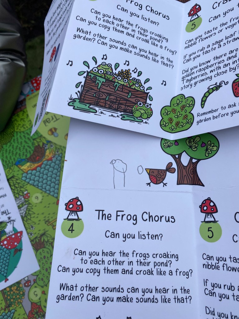 They are so very proud of their garden and it was an absolute joy co-designing the whole trail with them, hearing how they use the space, their stories and their favourite places. They chose where the toadstools should be planted, what should feature on the map and what prompts we should put on the back of the map that link with each toadstool. The children were so involved with it all – proudly leading the way around the garden as we pretended to be frogs and bees and tall tall trees, excitedly pointing out the fabled spot where the ladybird bush grows.