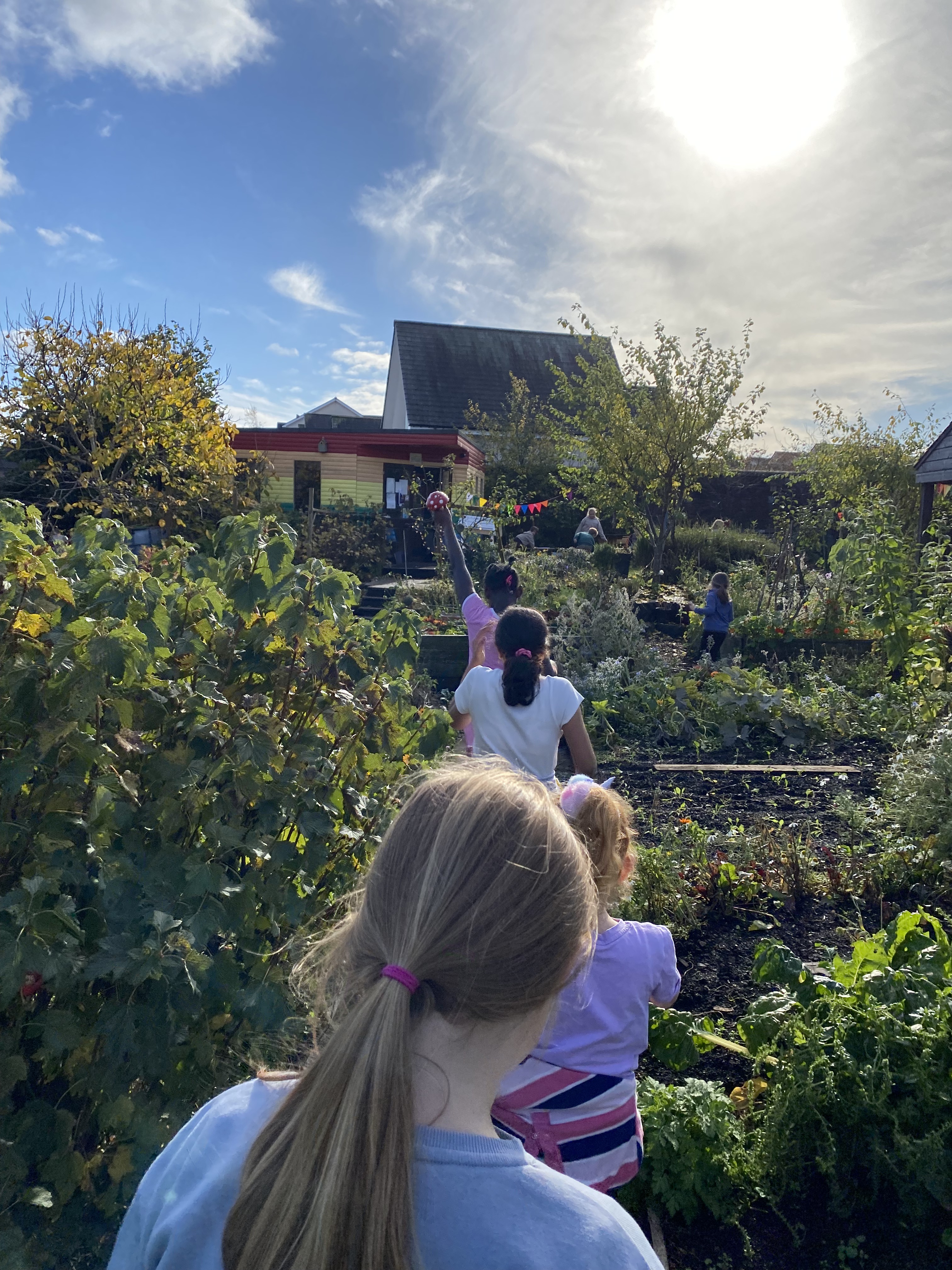 Wiggly wee tiger worms in a compost heap. Strawberries, chives, gloriously tall artichokes and school plots stuffed with vegetables. Birds and bees and slugs and caterpillars and children! So many joyful, playful children enjoying outdoor freedom, embracing imagination and creativity and nature and secret learning – whilst eating those strawberries and chives and spotting those birds and bees and drawing the gloriously tall artichokes and wiggly wee tiger worms…