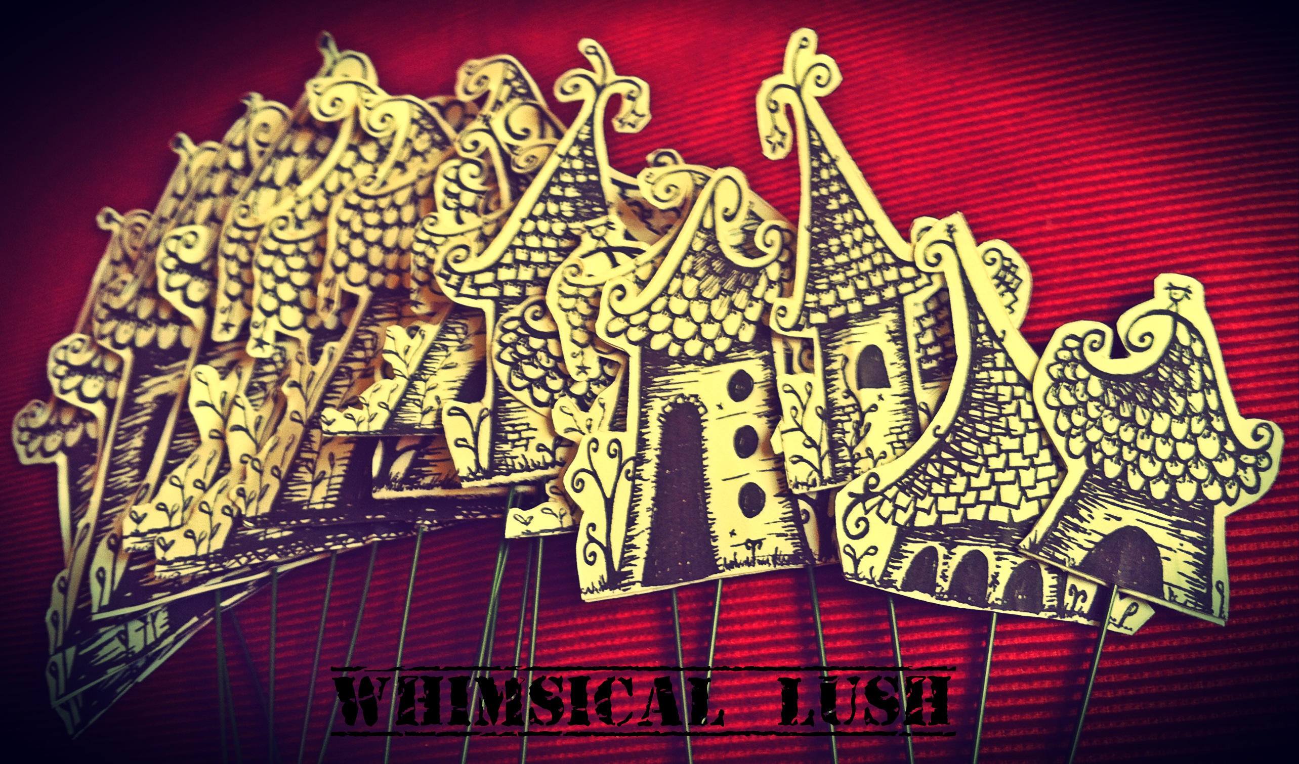 I draw little houses, towers and tents (a lot) and it turns out that Irving really likes them. He asked me to create hair pieces from them. Houses for hair. I loved this idea, it had to be my favourite yet. I get commissioned to create pieces that I already love to draw and they get to be worn and be part of a show! How fantastic is that!! So after a lot of making of prototype houses for hair that involved wiring them to hair bands, hair grips, clips and more the conclusion was that it was far more versatile for me to simply attach them to wire. Thick pieces of wire. It would allow for them to be arranged in any way around a hairstyle, which let the hairstylists on the night have much more freedom to create. Houses for hair were born.