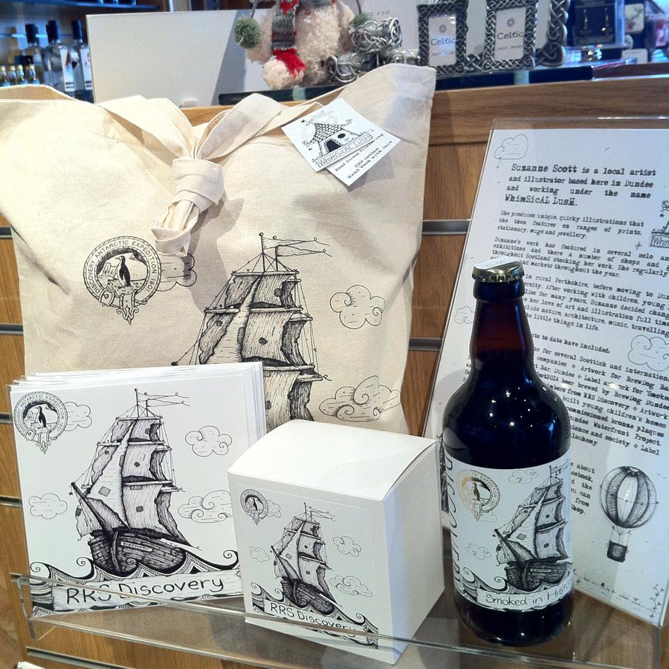 Did you know part 1: The man on the ship loved the ‘Ghost Ship’ illustration so much that he asked the girl who likes to draw to put it onto beautiful bone china mugs, cotton bags, cards, notebooks, framed prints, T-shirts and postcards so that they could sell them in the ship’s gift shop at Discovery Point, Dundee? Well you now know that too…. so pop along to the ship next time you are in Dundee and learn more about her wonderful history, her adventure with Captain Scott to the Antarctic, the penguins and take away with you some amazing beer, and ‘Ghost Ship’ souvenirs with an awesome story to tell!