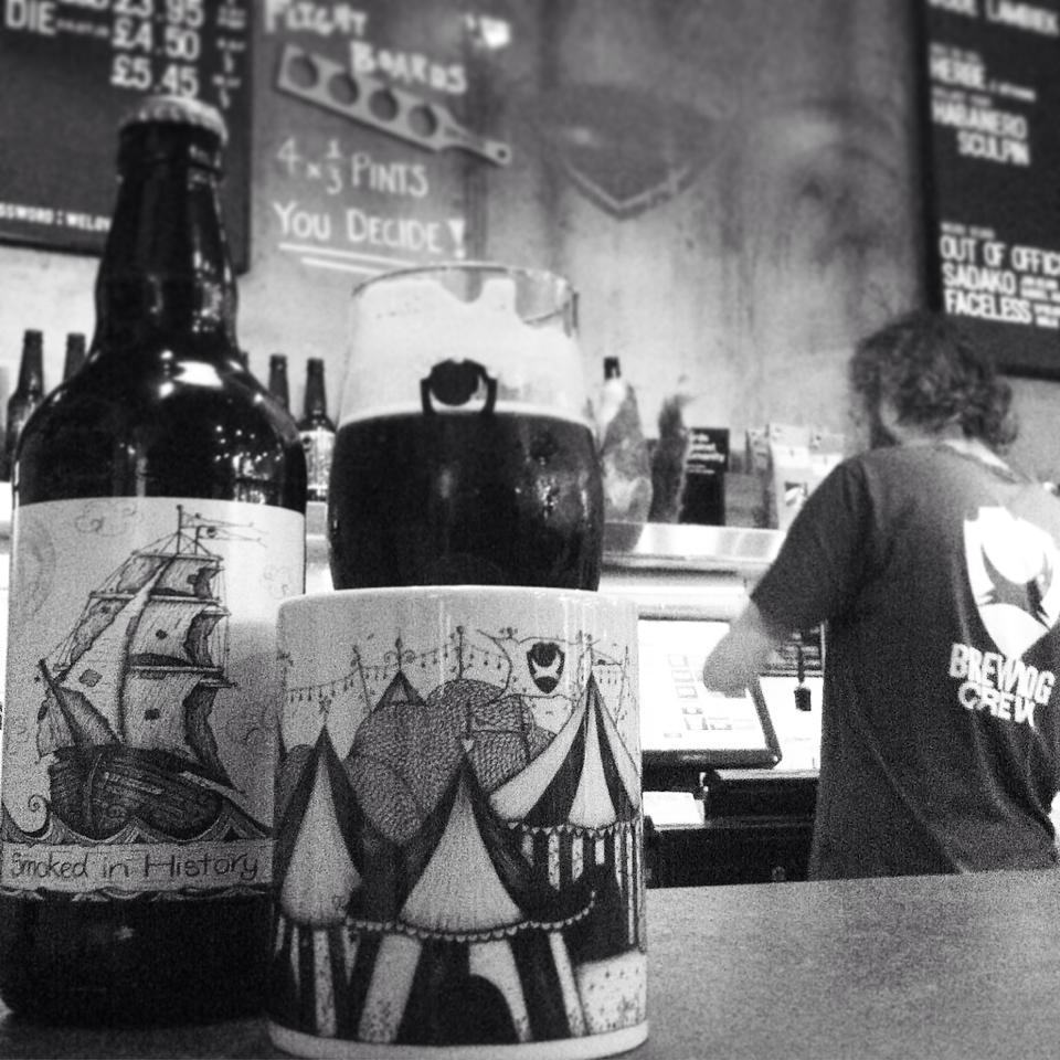 But to get back to the ship and her wonderful leftover timbers. Every year BrewDog bars all over the country do this thing they call collabfest. Basically, each bar choose a brewery that they think makes awesome beer too and they get to plotting and planning a wee beer adventure together. Last year for #collabfest2014 they got together with Alechemy Brewing in Livingston. They wanted to make a unique beer to celebrate Dundee, and being the creative types they came up with the idea of burning those leftover timbers from the ship to create a unique smoked flavour for their beer. They were all very delighted with this idea but there was just one thing missing. A label for their beer once it was bottled. It needed a picture.