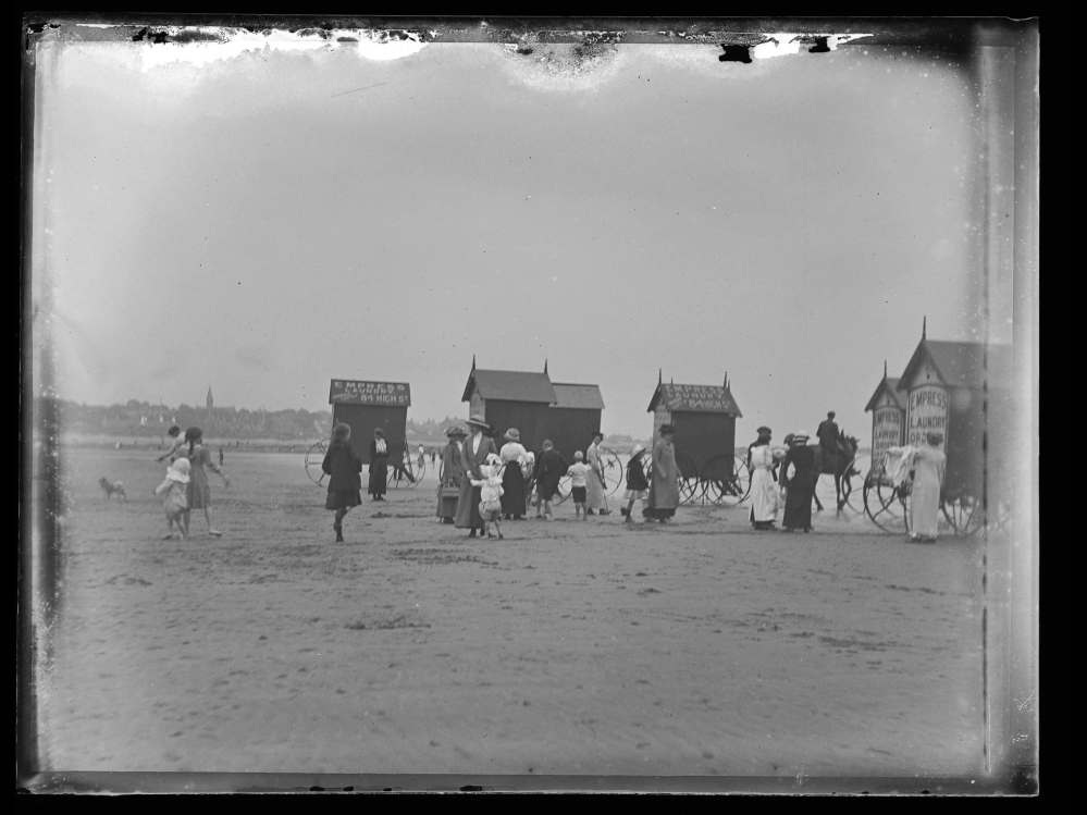 When rummaging through the incredible collection that had been curated for us in the archives I was immediately captivated as to what the story was behind these quirky wooden wheeled beach huts on these beautiful glass plates, which date back to the summer of 1913. I am ever so slightly obsessed with drawing wooden huts, cabins and curious buildings so it would probably come as no surprise to anyone who knows my work that I would be drawn to them.