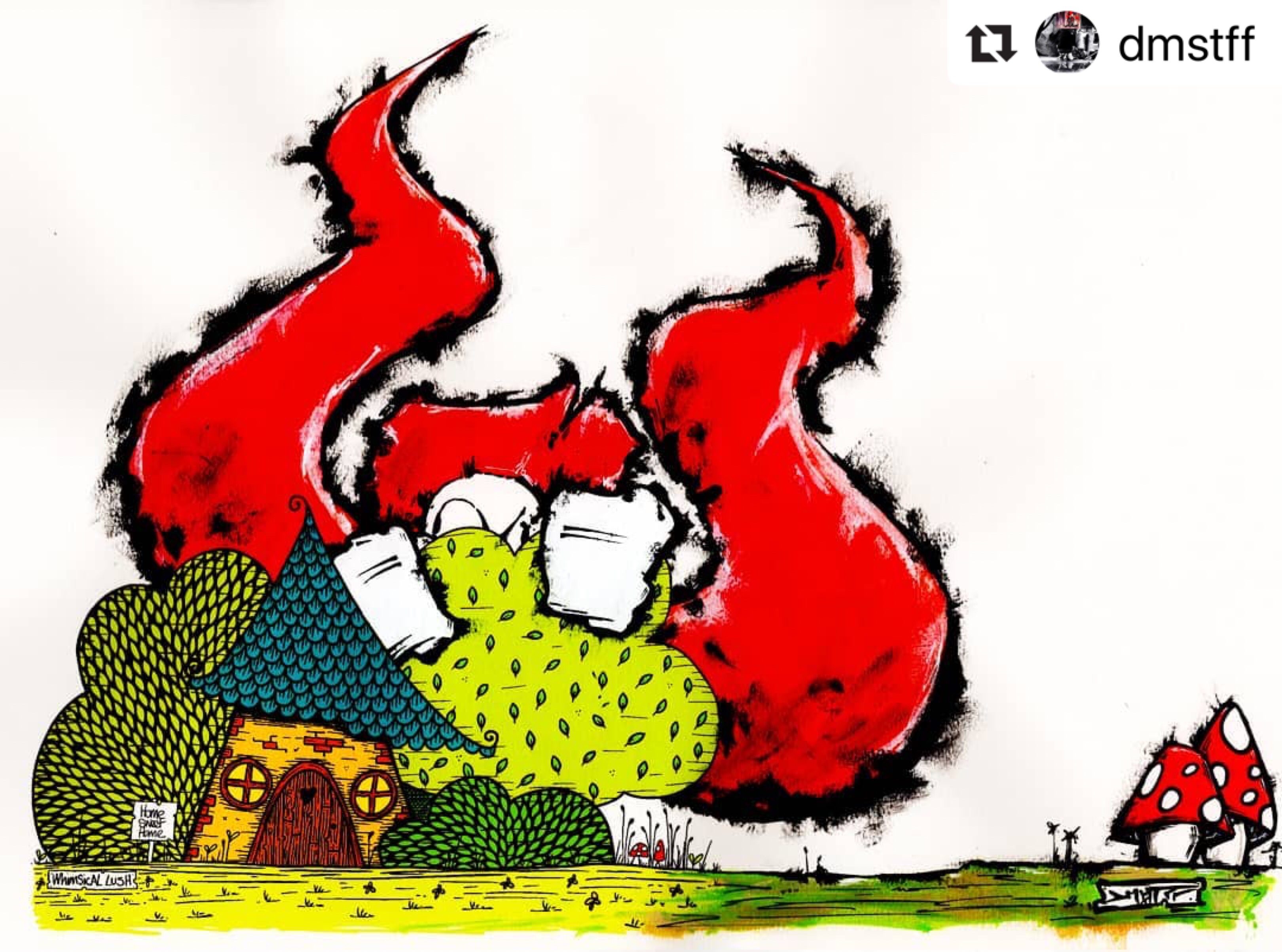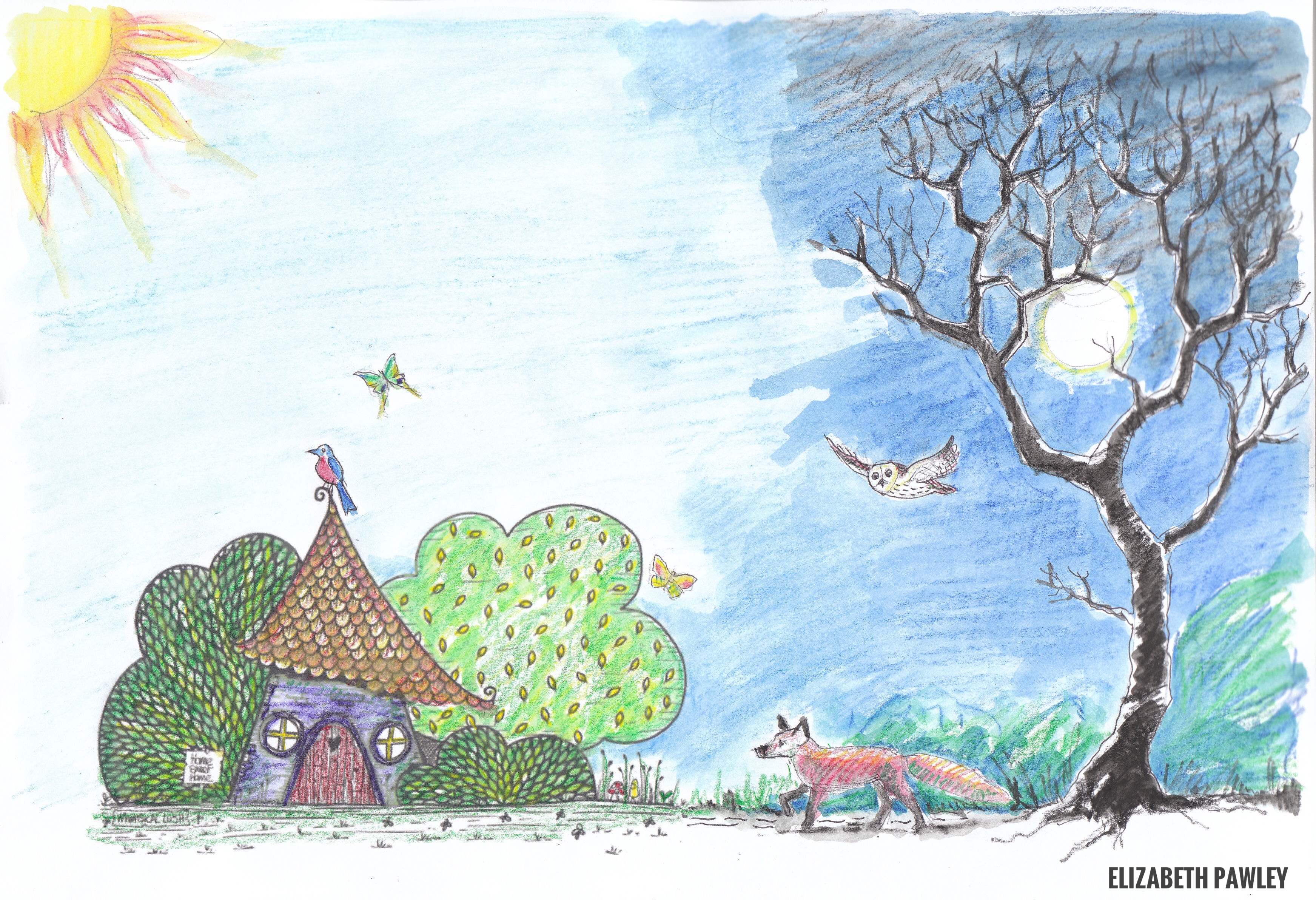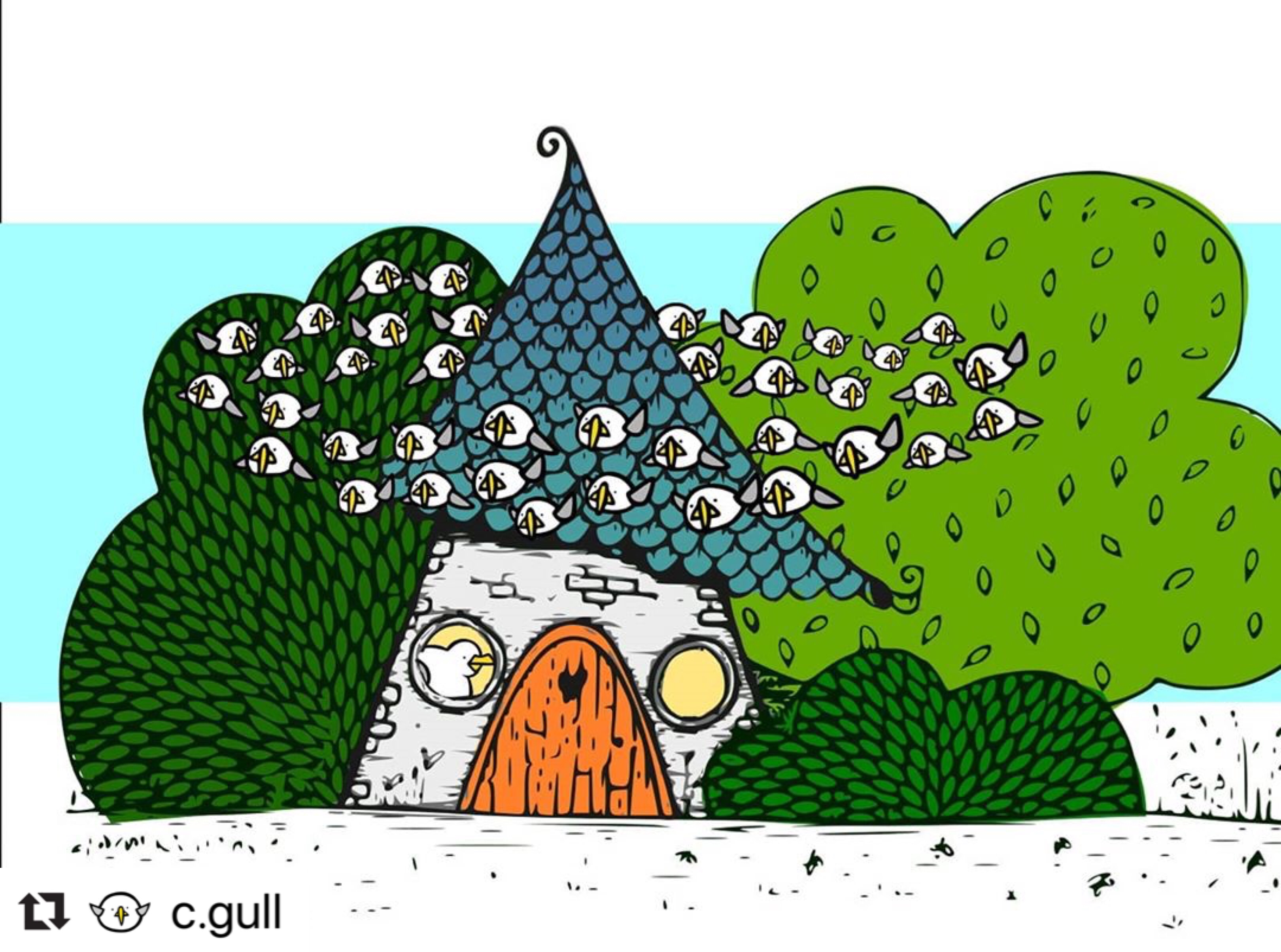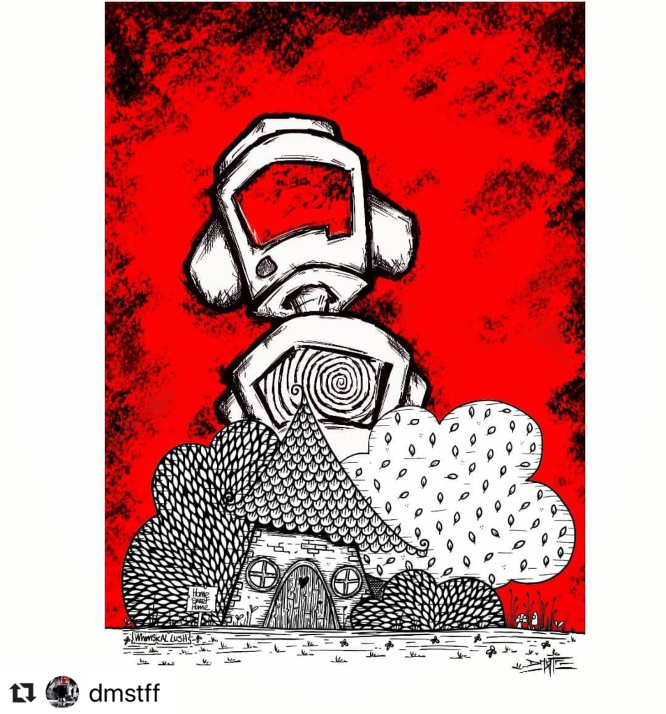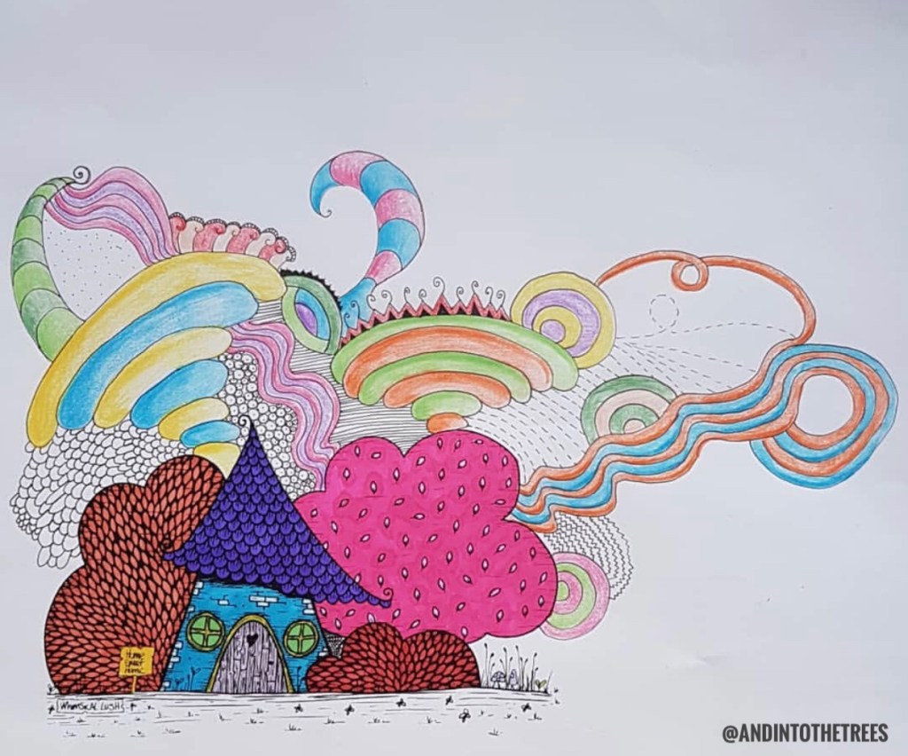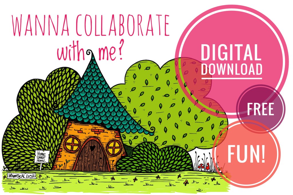 Would you like to collaborate with me? Let’s have some FREE fun! I’ve drawn a wee house and left lots of space for your imagination! Will you colour it in? Leave it black and white? What will you add? More houses? Trees and Bushes? Tree houses? Lochs or mountains? Flowers and animals? People or creatures or cheeky monsters? Rainbows, clouds and unicorns? Hot air balloons or aeroplanes or the most fantastic flying machine that we ever did see!
