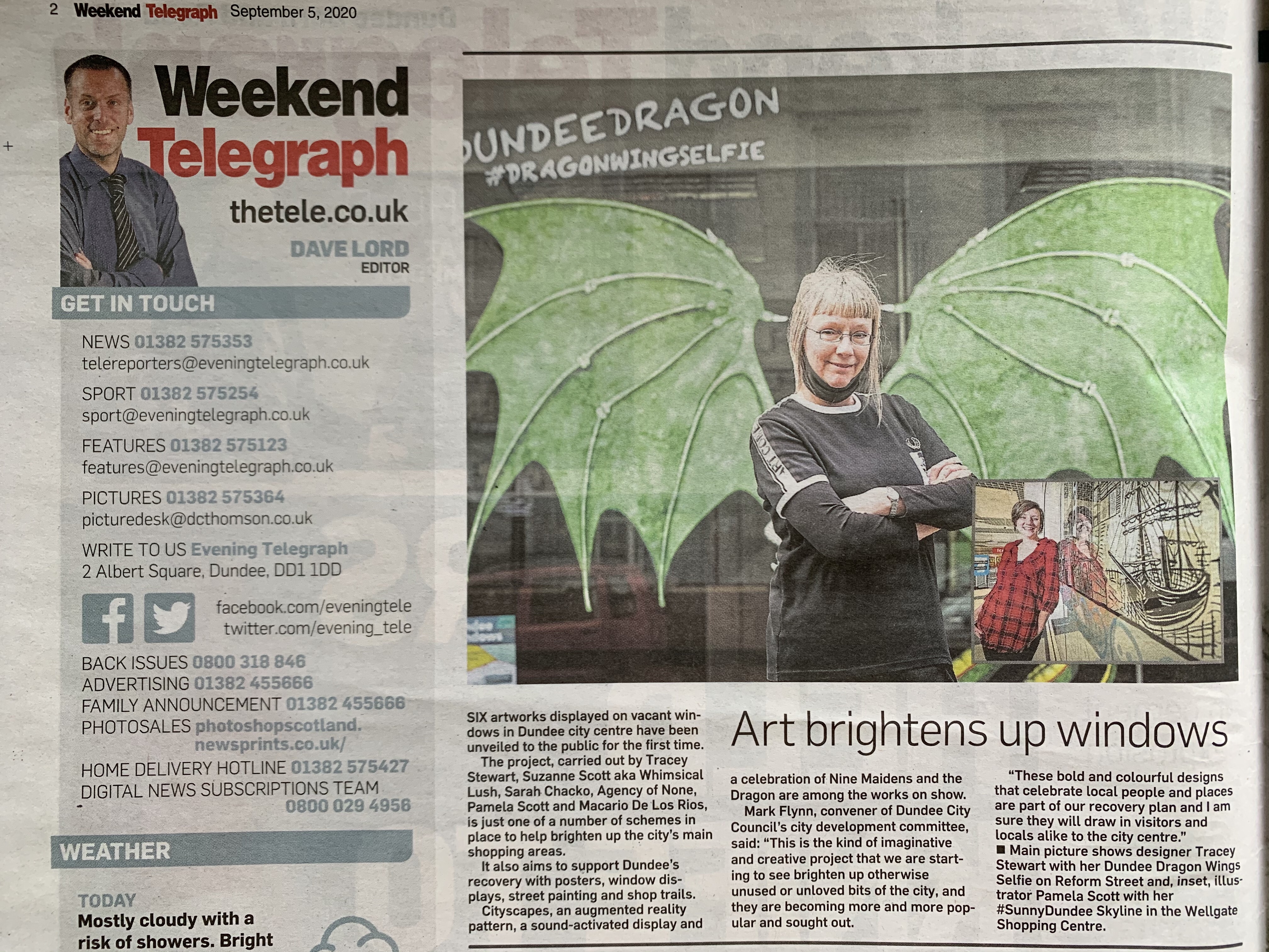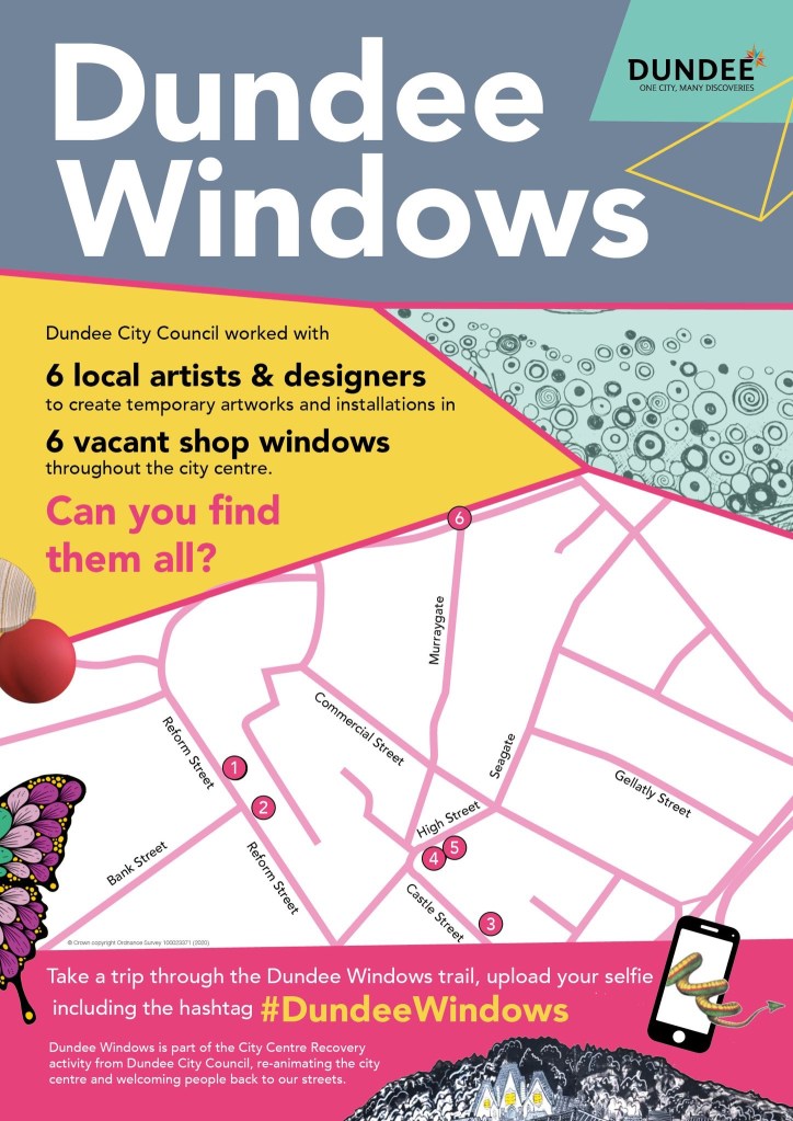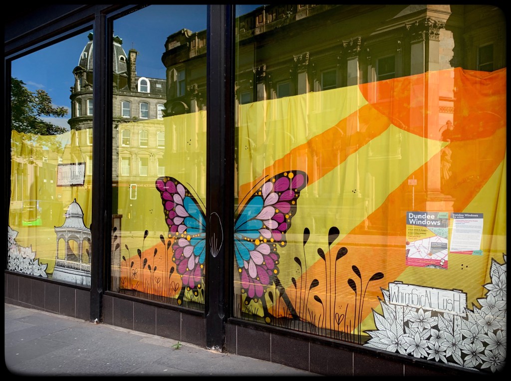“Dundee Windows is part of the City Centre Recovery activity from Dundee City Council, re-animating the city centre and welcoming people back to our streets.” I am delighted to one of six artists chosen to “create exciting artworks in vacant windows in the city centre.” The other artists are: Tracey Stewart, Sarah Chacko, Agency of None, Pamela Scott and Macario De Los Rios. (Quotes from Dundee City Council article)