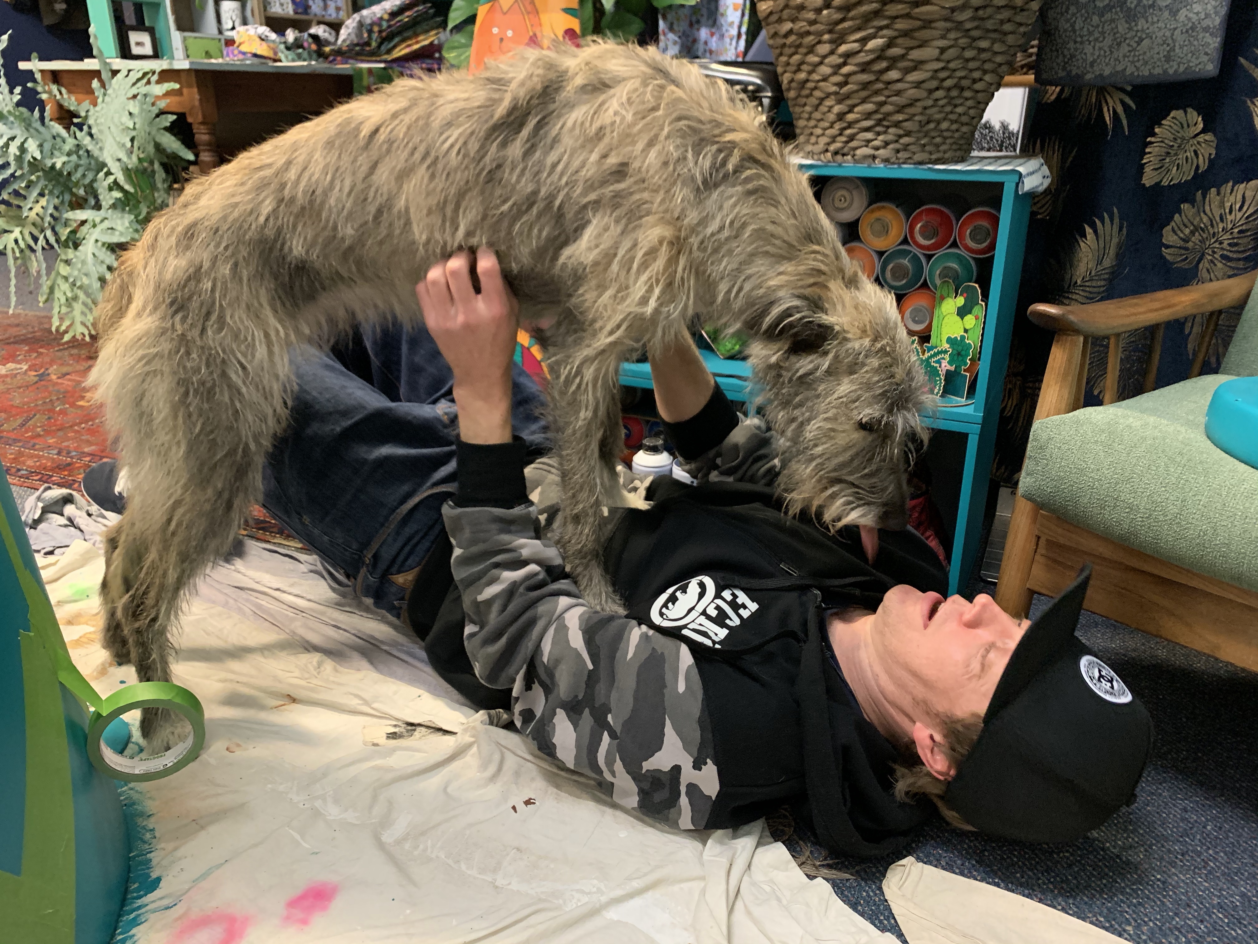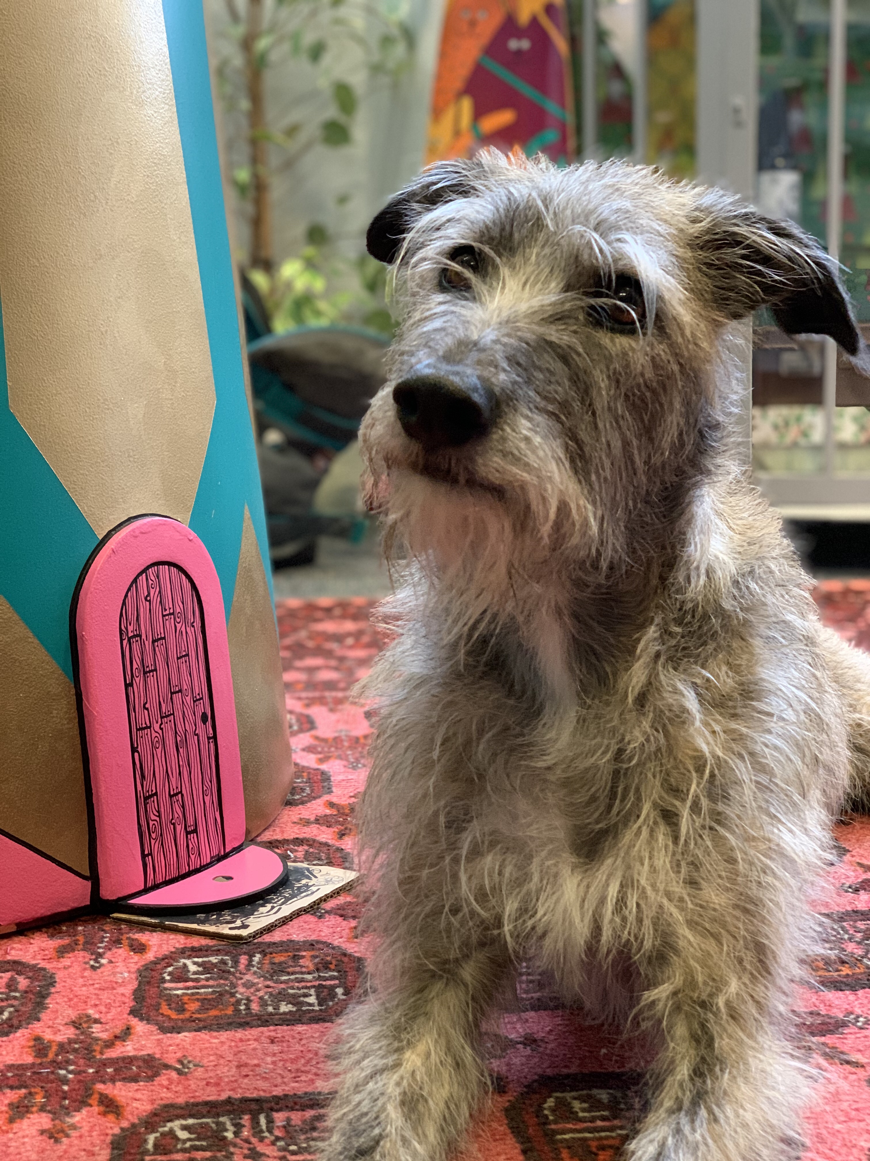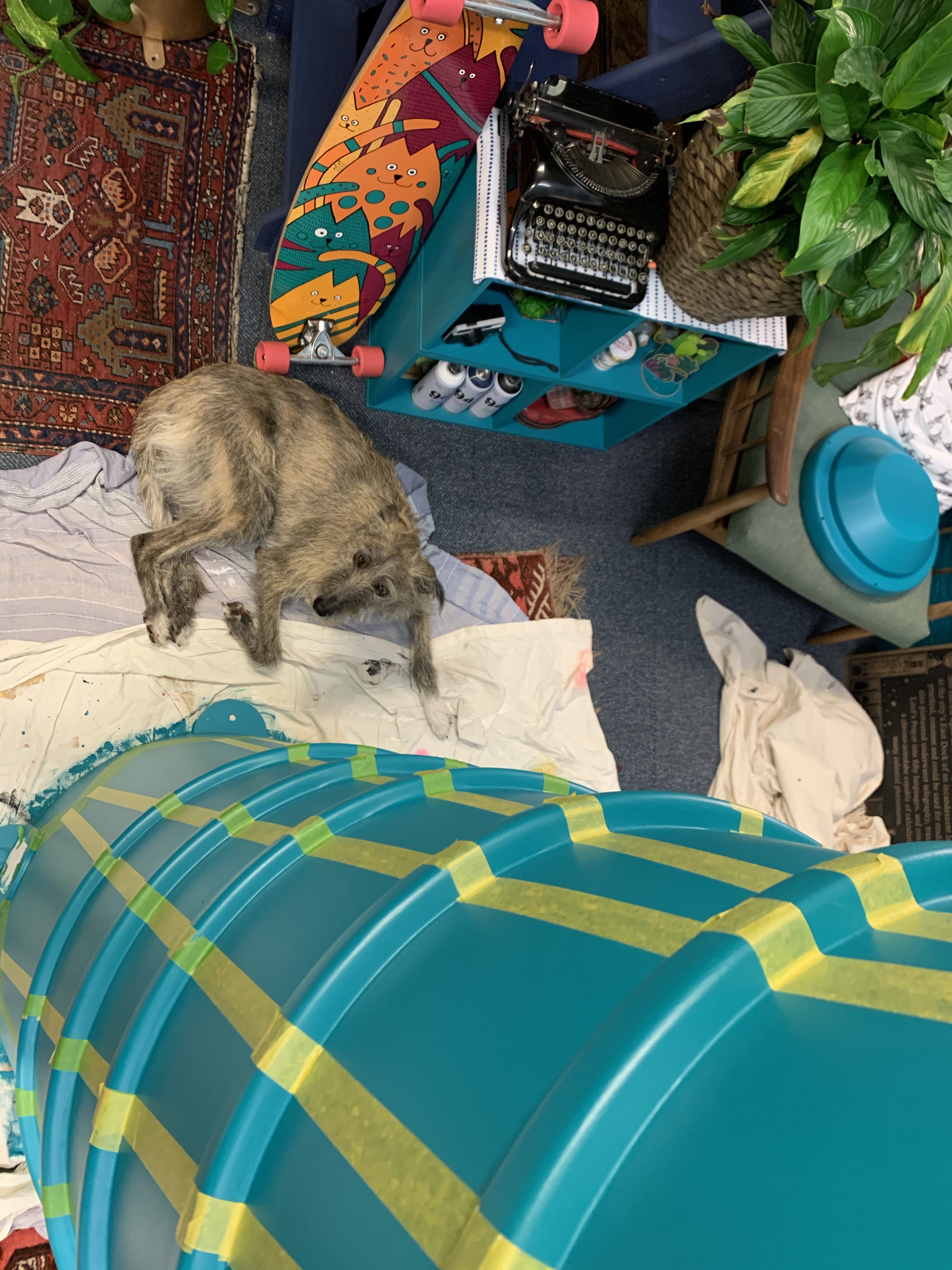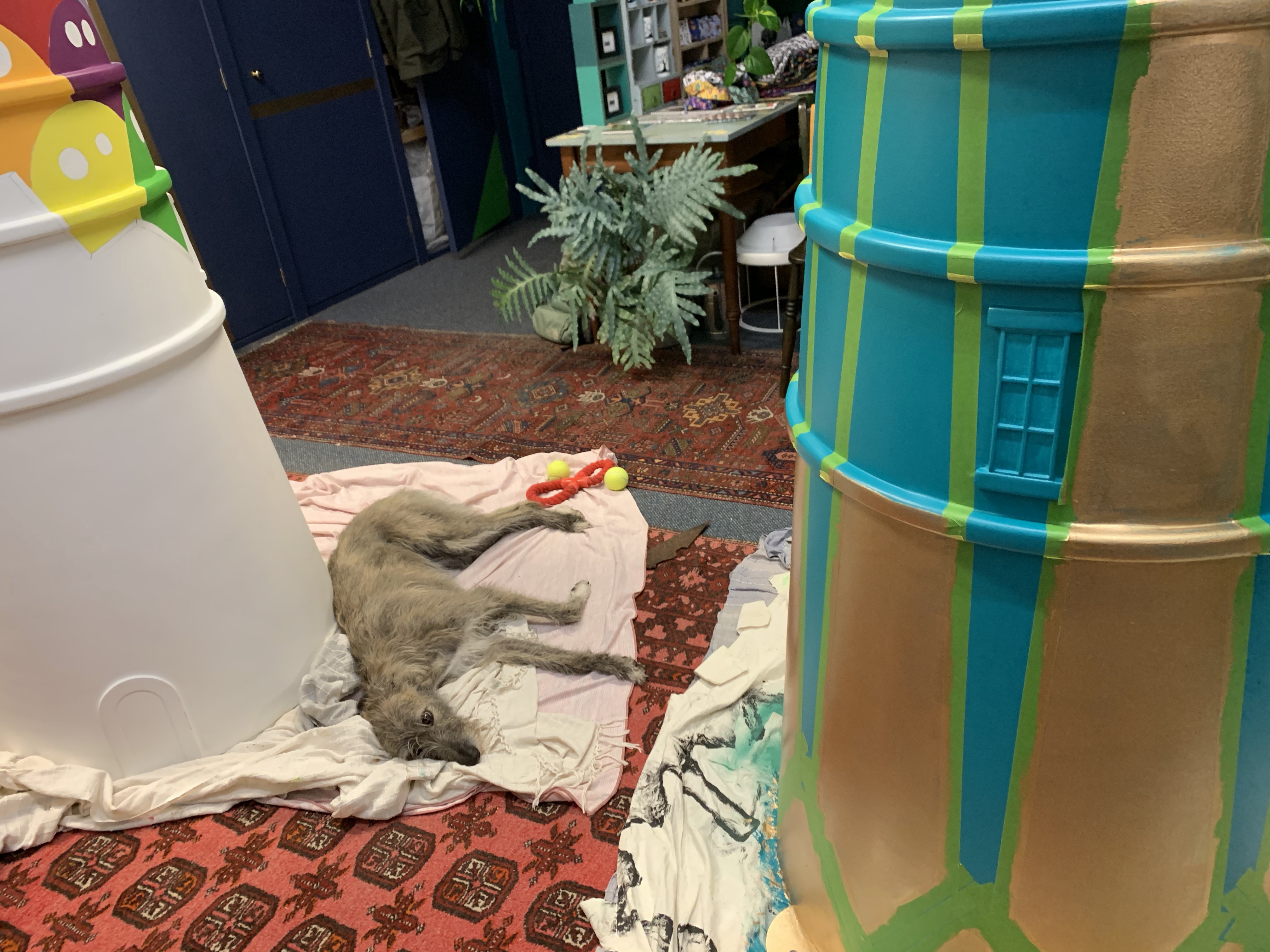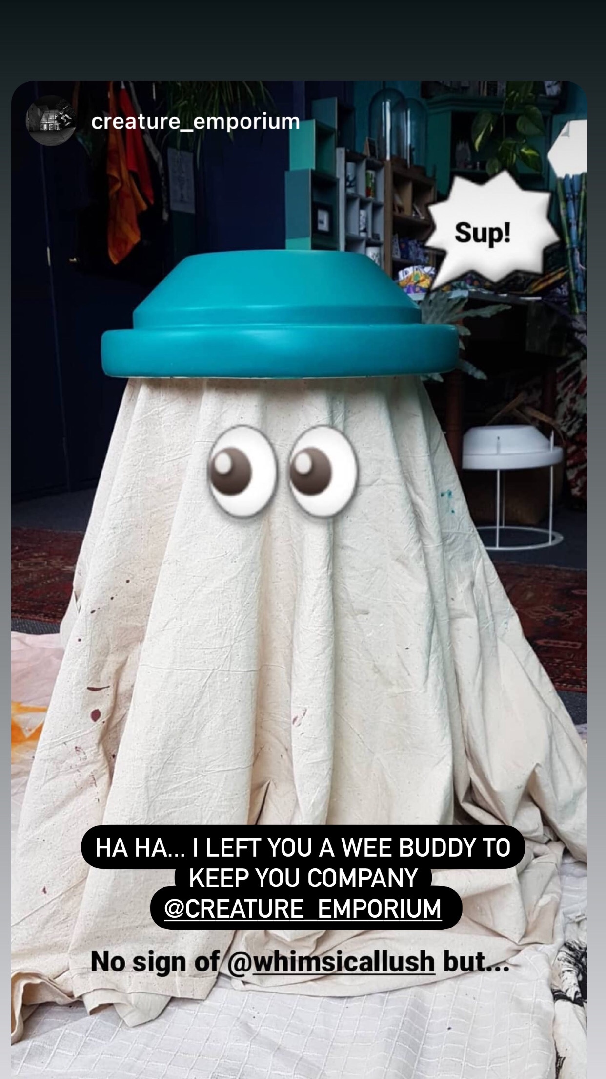 … and some behind the scenes pictures too! You’ll spot that I was sharing my studio space with two others. My scruffy wee dog Lupin is not usually far from me and is great company in the studio but not so helpful with wrapping sculptures, he he. She’s also good at telling Blair (Blair McCafferty – Creature Emporium) to stop slacking and get painting too! I love that photo. 😆 He needed somewhere to paint his lighthouse and we always have a laugh working together. You can find his lighthouse in Aberdeen.