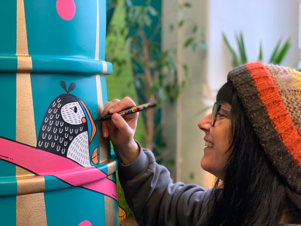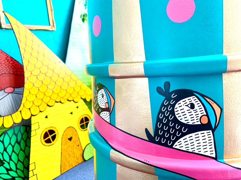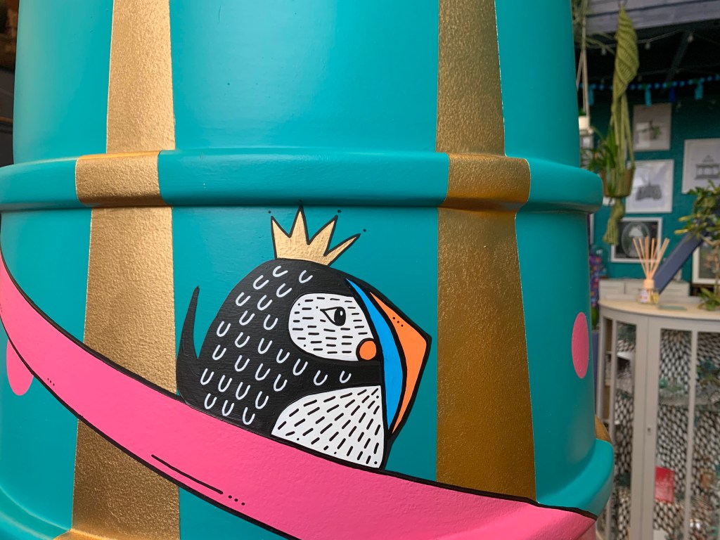 We all look forward to the puffins returning to the Scottish shores – this Light The North lighthouse/ Helter Skelter celebrates iconic and cheeky wee birds. Spotting them in the wild is really something so special and I just love drawing and painting them. They bring me lots of joy creating them so my hope is that they will bring a smile to others too as they spot them spinning around their very own lighthouse.