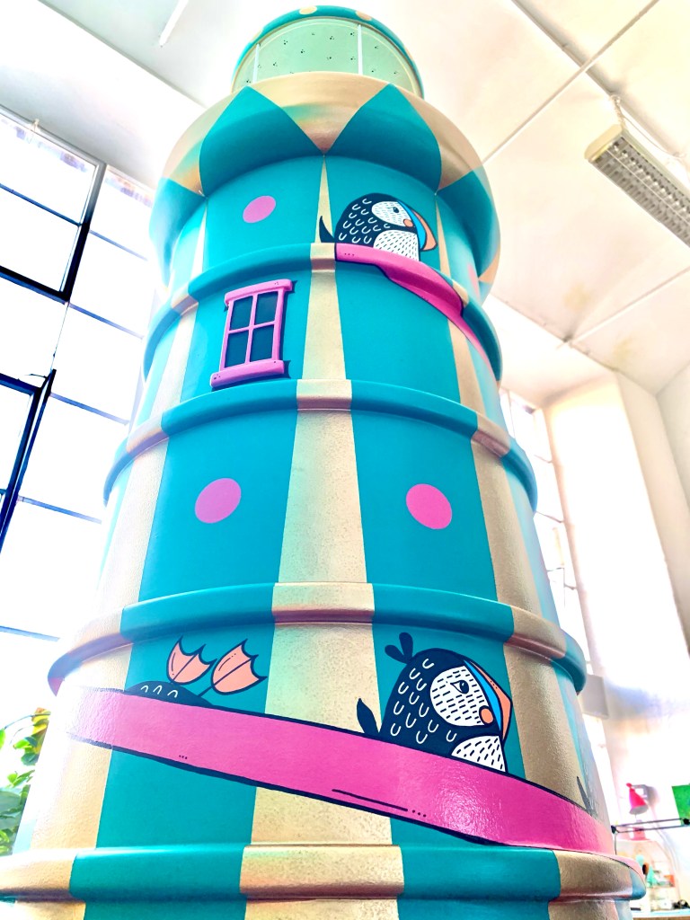 Pink: This bright shade of pink that makes up the puffin’s helter skelter slide also doubles up as a beautiful big ribbon wrapping its way around the lighthouse like a hug. It represents the pink ribbon that symbolises breast cancer awareness; a cancer that has caused much pain and suffering to several women I am (and was) very close to, their friends and families too.