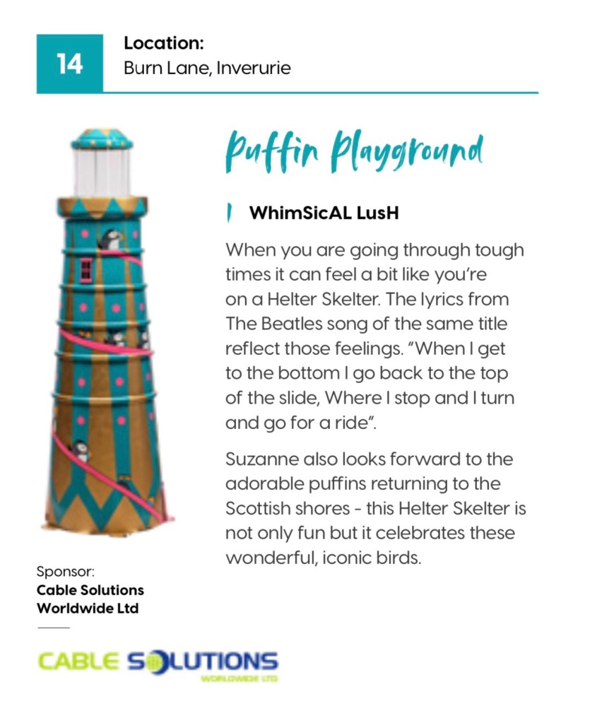 “Suzanne also looks forward to the adorable puffins returning to the Scottish shores – this Helter Skelter is not only fun but it celebrates these wonderful, iconic birds”.