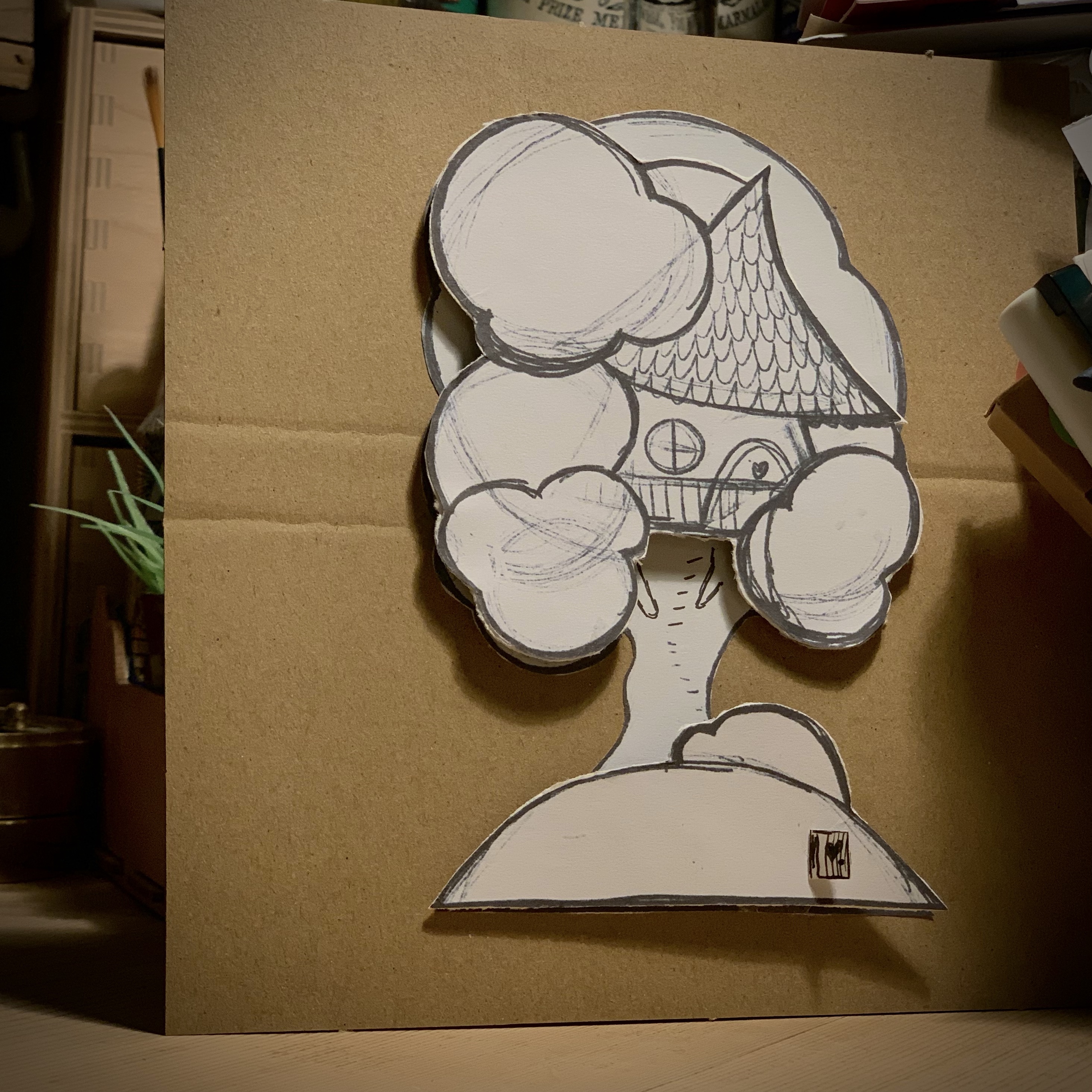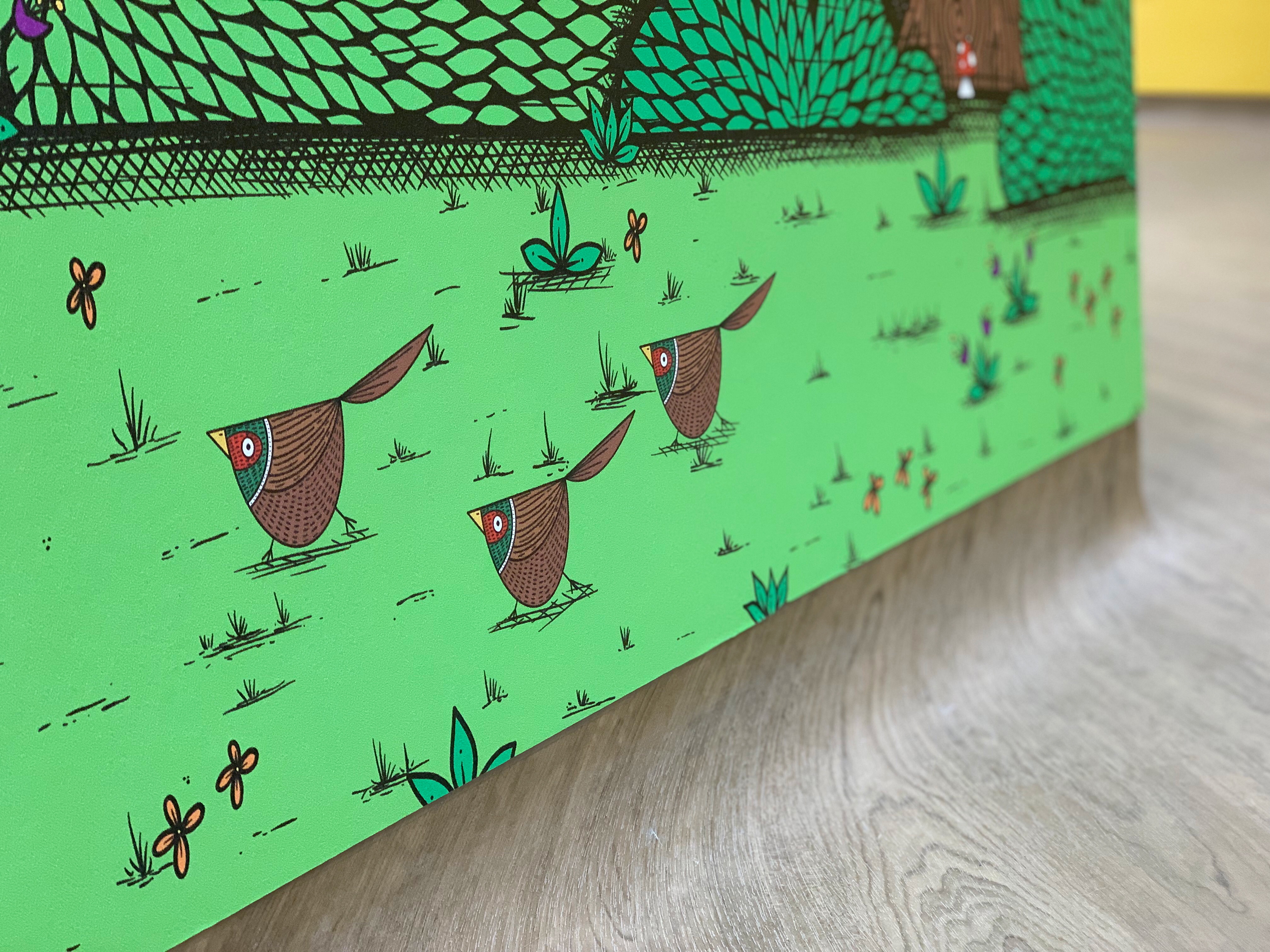 You will see the birds (his bird brains 😅) flying from his head and off into the space and the themes of nature, trees, journey and more too. We will come back to him a little later on in this piece.