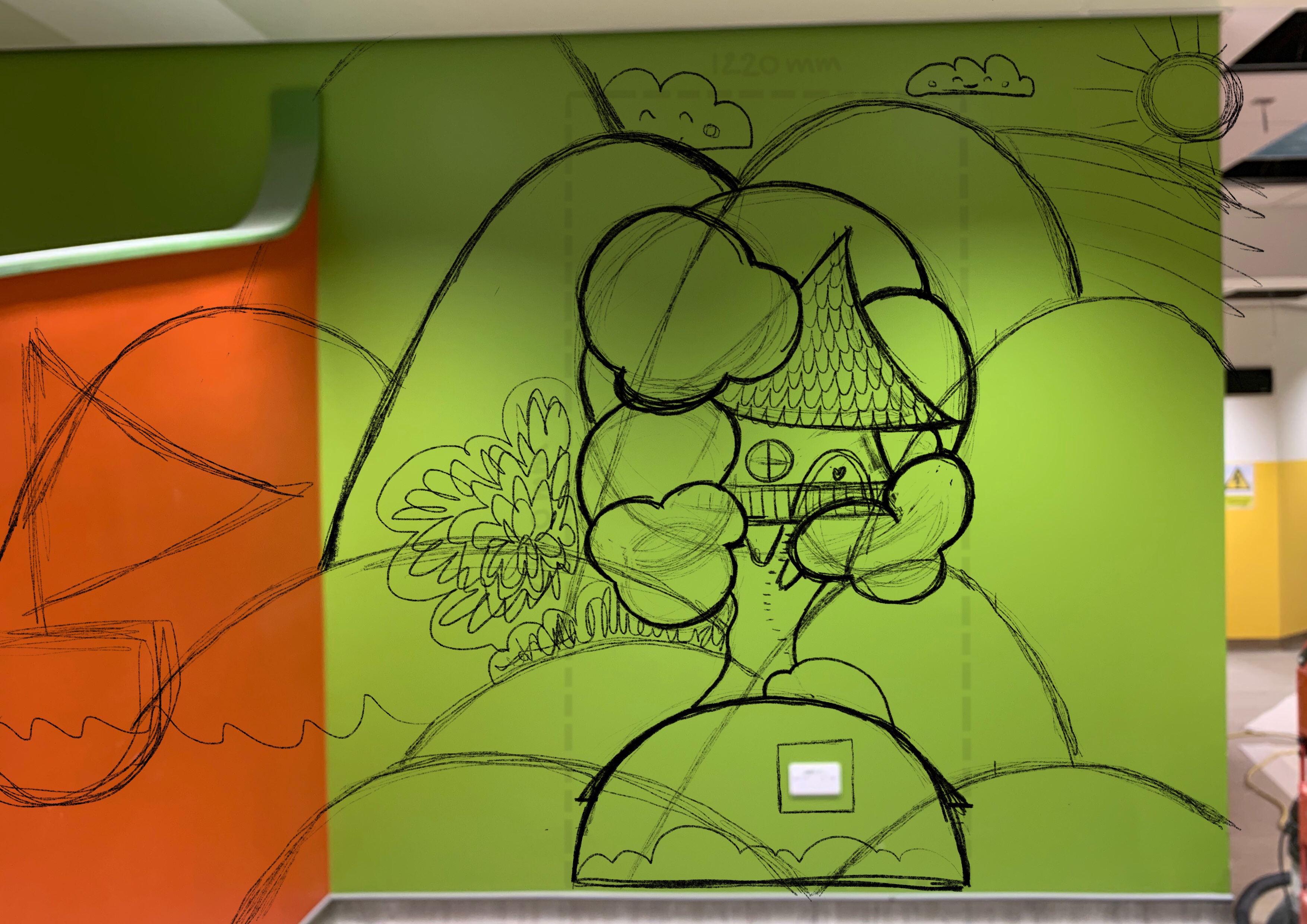 “Your art work is truly amazing within the space. It has captured the childrens playful world as well as giving the adults something to engage with in their own imaginations.