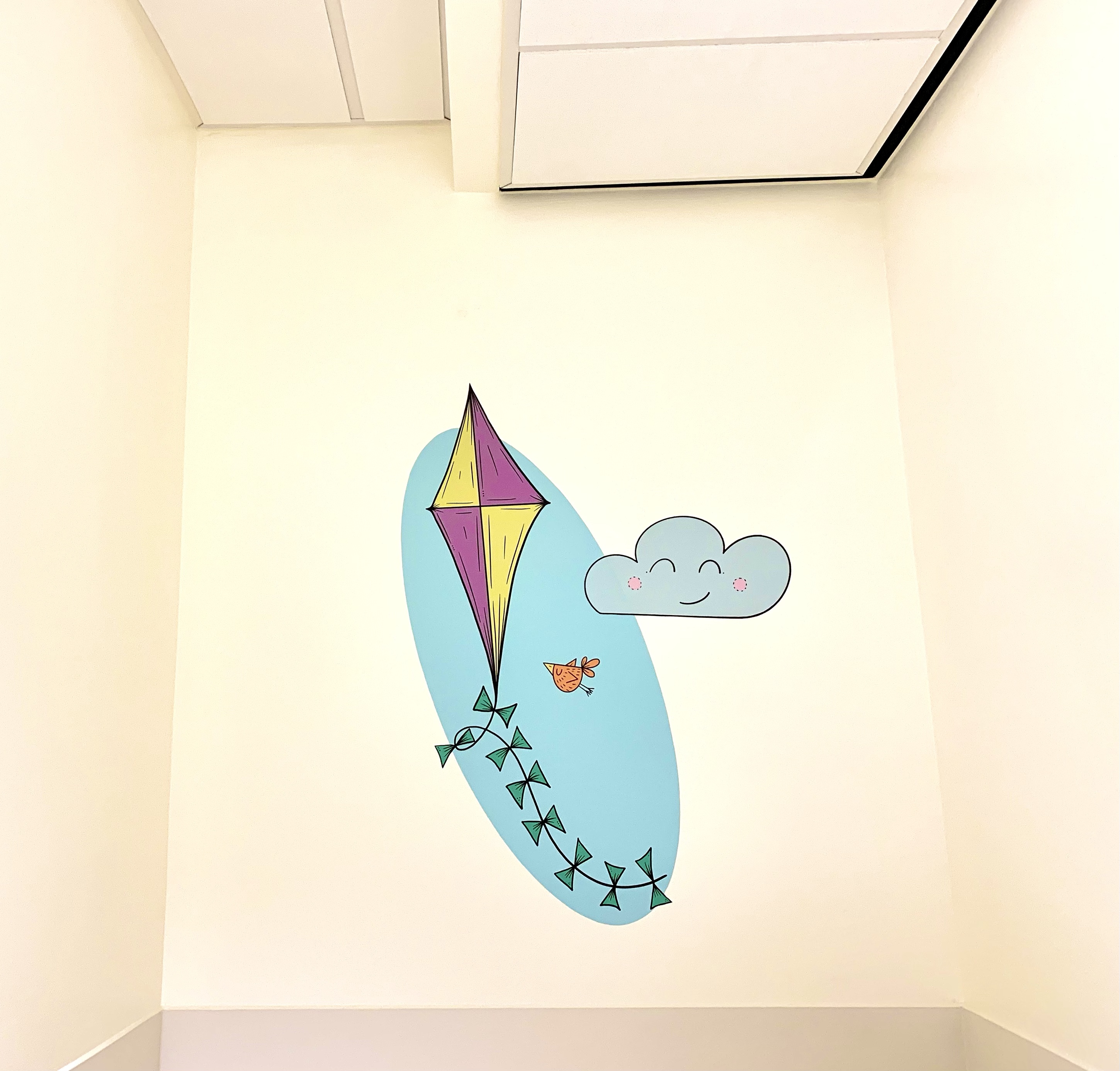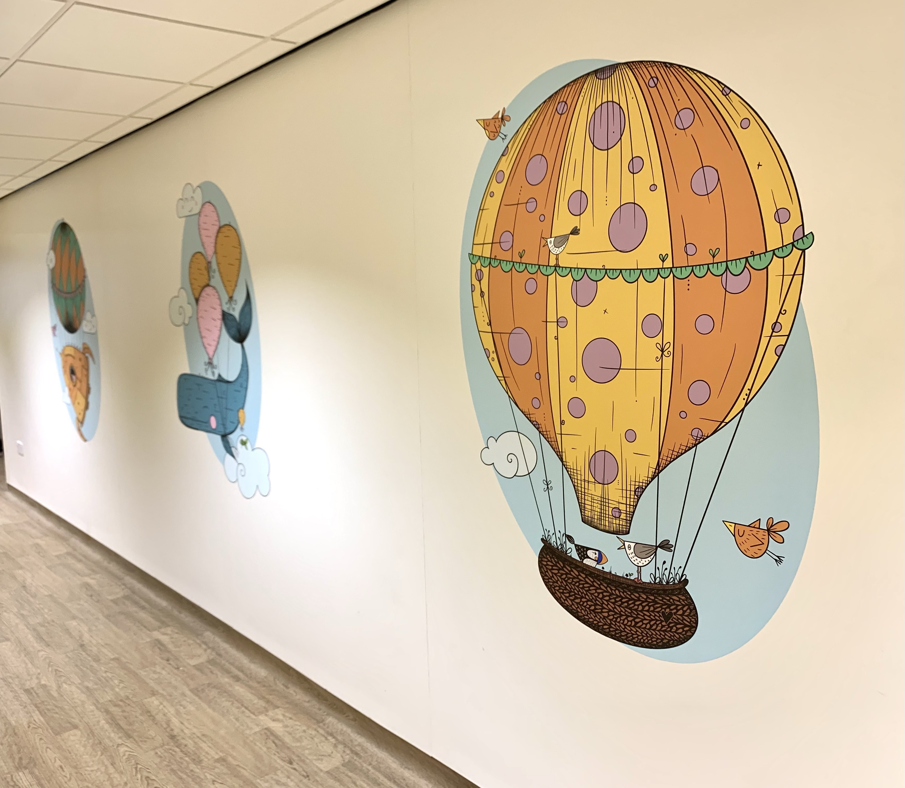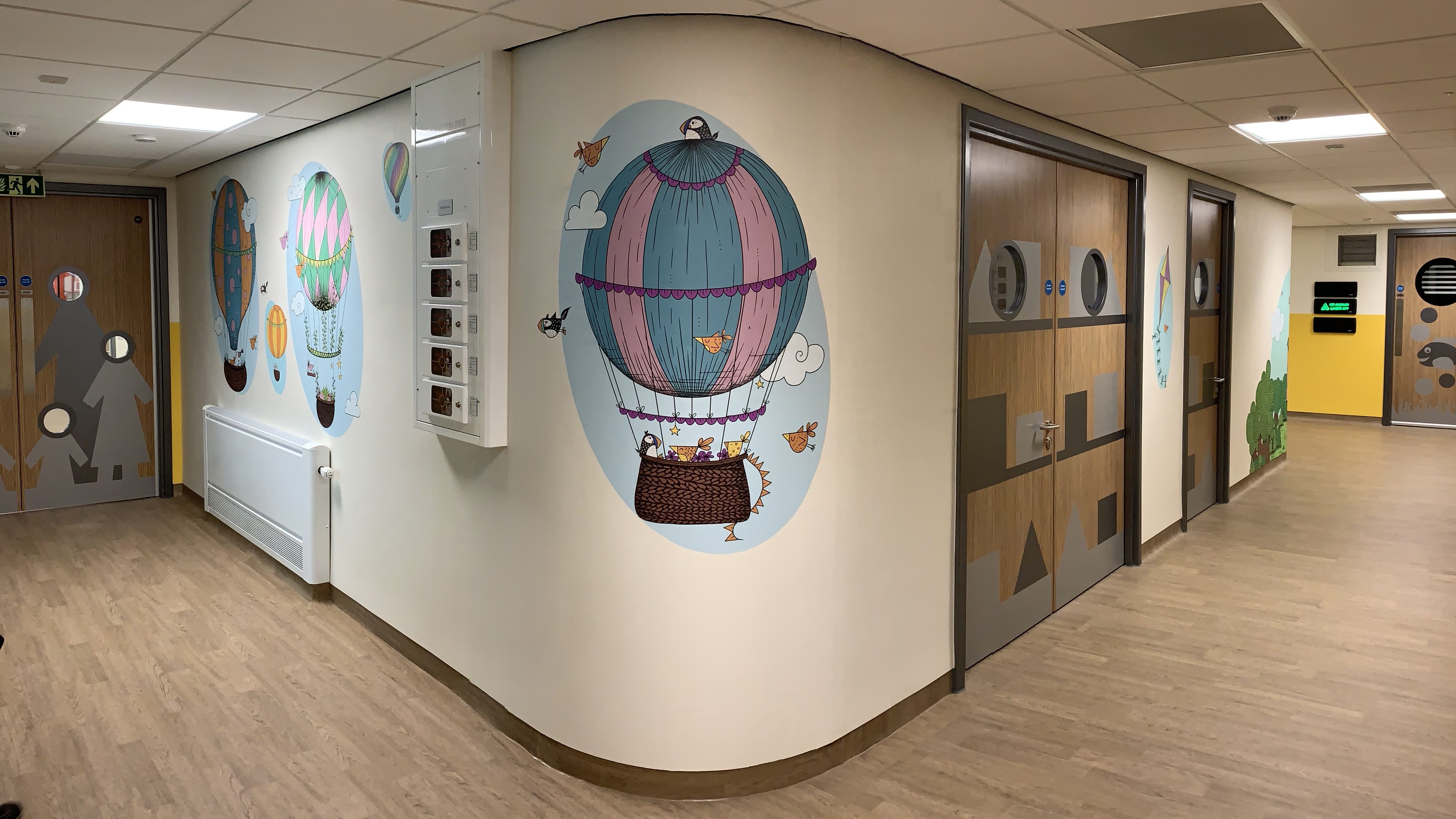 There are pockets of illustrations that are very detailed and encourage exploration and conversation in areas where more distraction may be helpful. Similarly where it is more helpful to keep everyone moving along the corridor the illustrations are more about movement and travel, with a little less distraction.