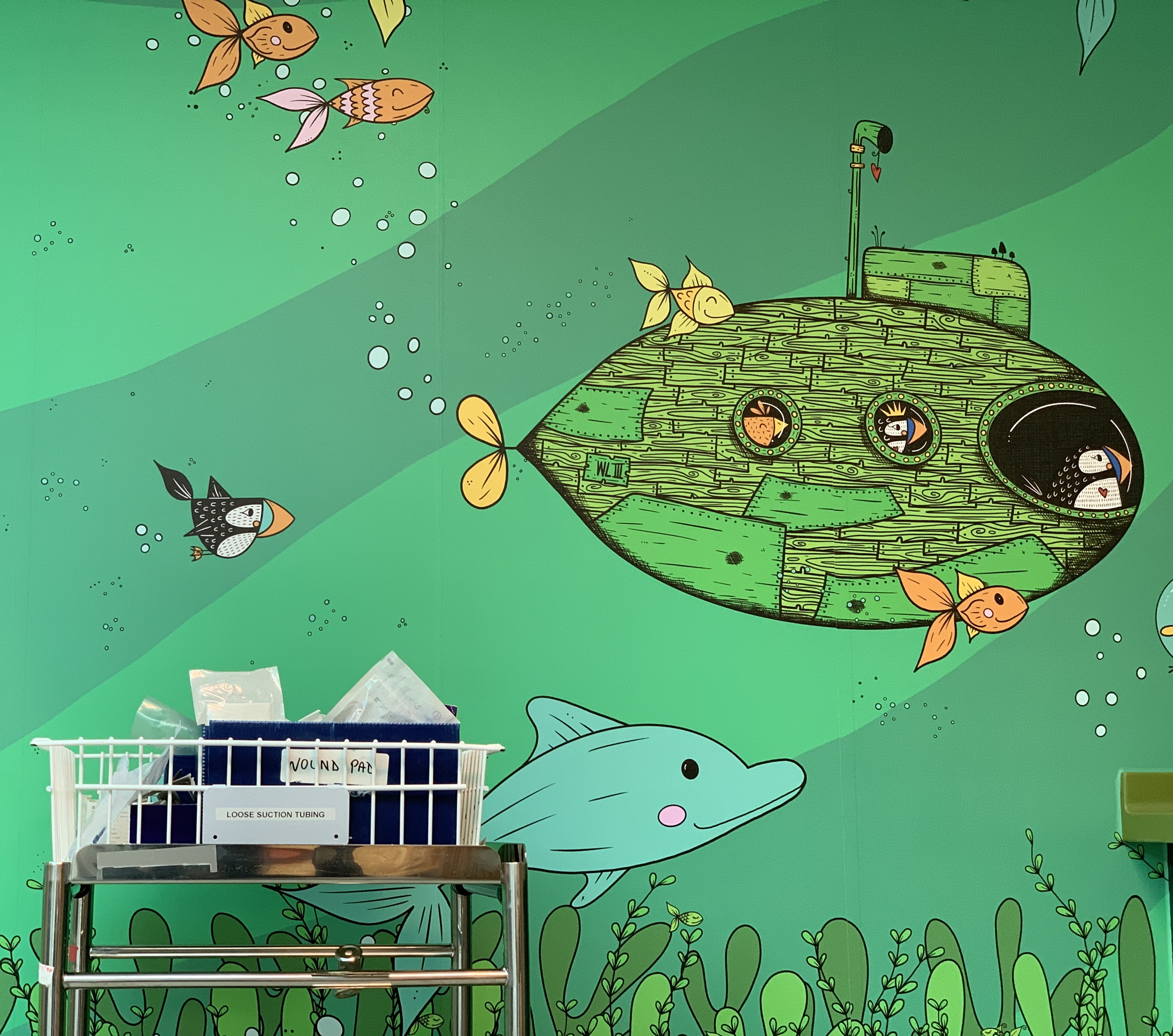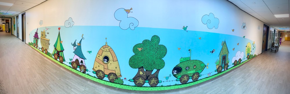 Thank you Grant, this project has been an incredible honour and huge pleasure to be a part of. I firmly believe that art has a huge role to play in healthcare settings, whether it be in the form of large murals (like we have created for this project) or small intriguing pieces that can distract and inspire. I hope that my work for the CTS will go on to help many and ease anxieties when they are high. I hope that it might even be a helpful tool for children and their parents to add to their life toolkits.