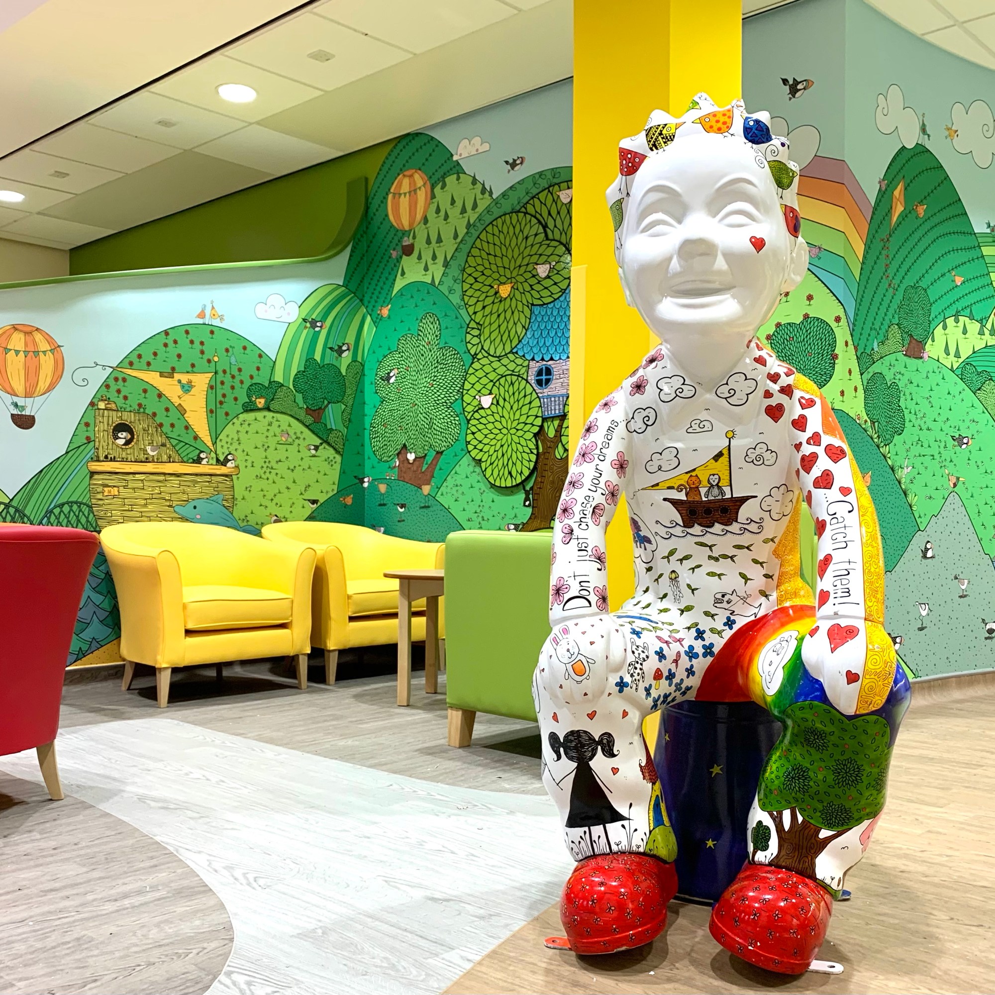 Our little feathered friends were first introduced to the Children’s Hospital when my Oor Wullie sculpture ‘Oor Dreamcatcher’ came to stay. I painted him, with the help of lots of children, for the first Oor Wullie’s Bucket Trail and The ARCHIE Foundation back in 2016 when we were fundraising for the CTS, so it was important to tie him in with the artwork too. Oor Wullie may well pop up in other places too, so keep your eyes open!