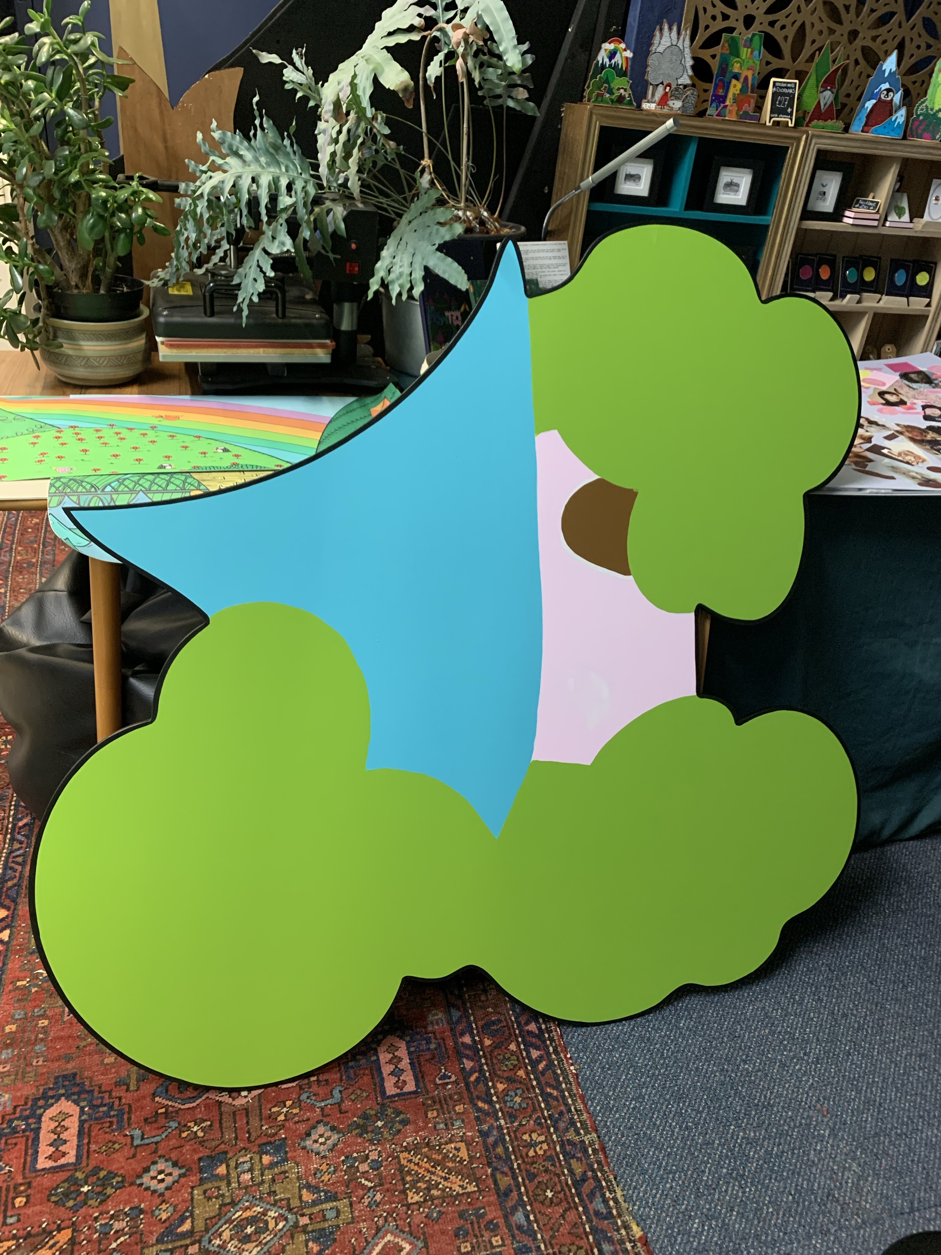 Wooden birds laser cut by Ross at Altered State. Wooden treehouse blank cut by Douglas and team at Wallace Panel Products. Extra tree help from my dad.