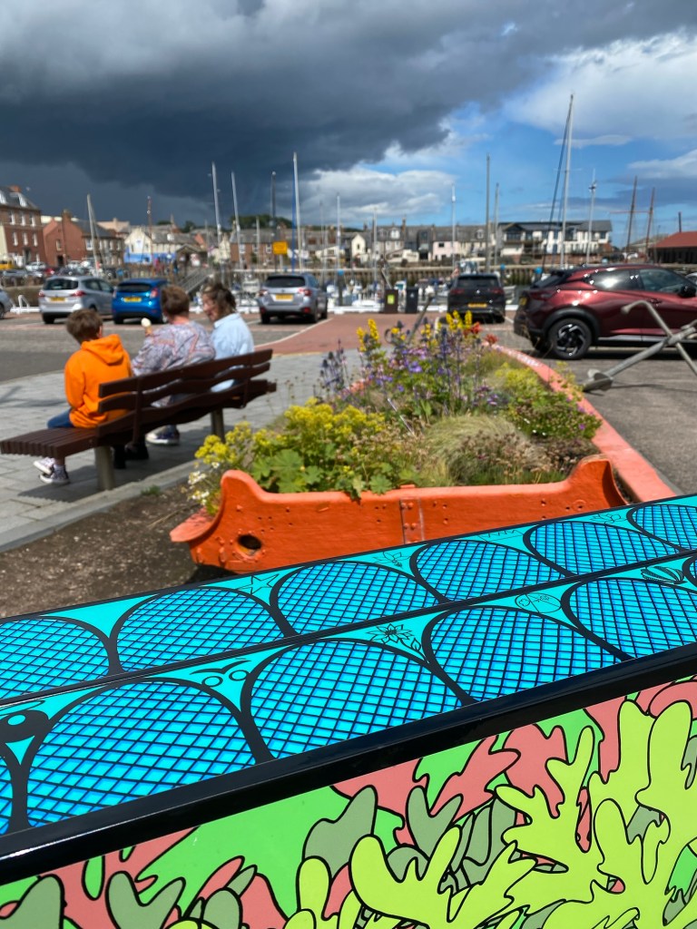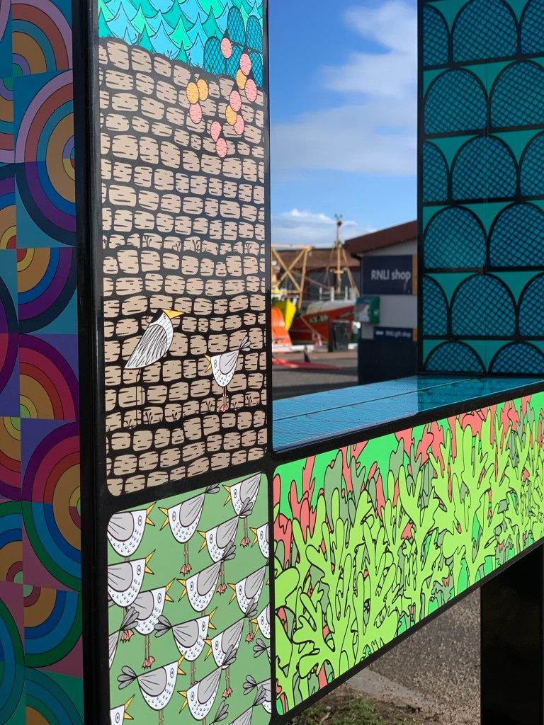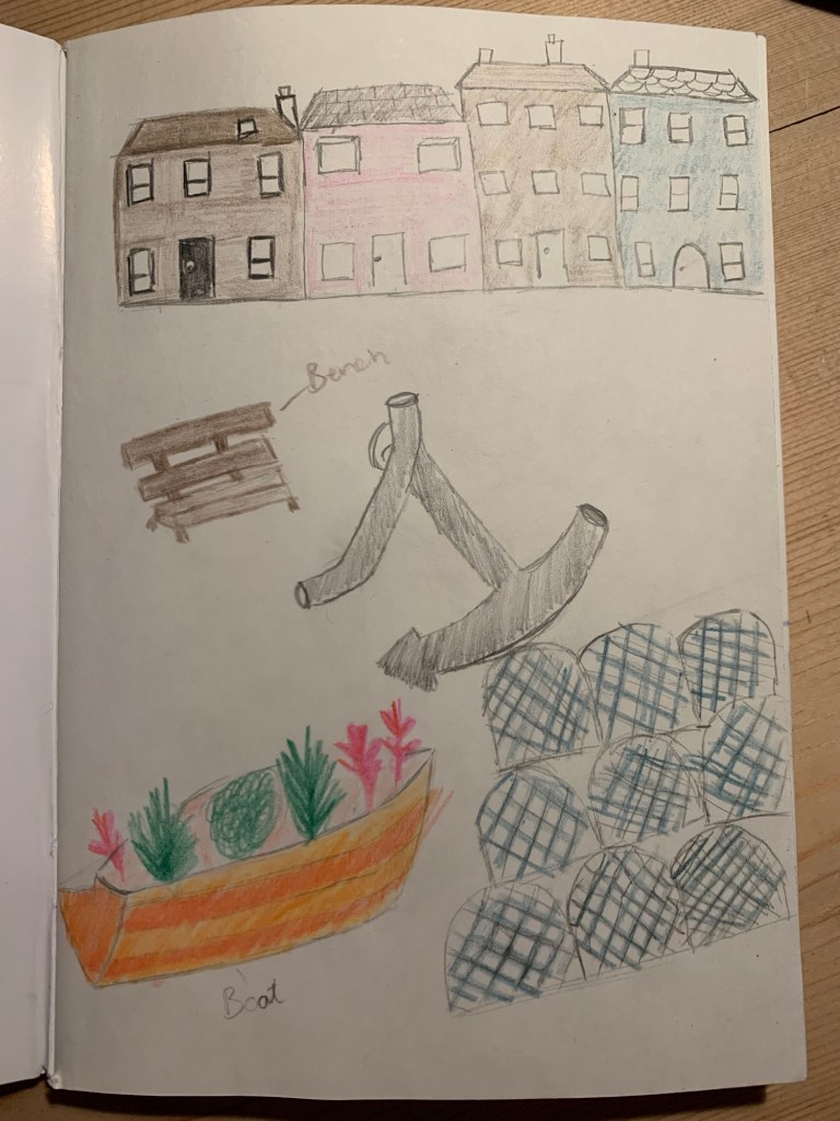 Designed to build relationships, whilst working together as a group. To build a sense of pride and gain confidence in learning new skills/ showcasing talents. We used our local area as direct inspiration, going out as a group sketching and taking photos and notes as we explored Arbroath Harbour. Hopefully it will encourage everyone to get outdoors and explore more, which we all know makes us feel better (even when it rains).